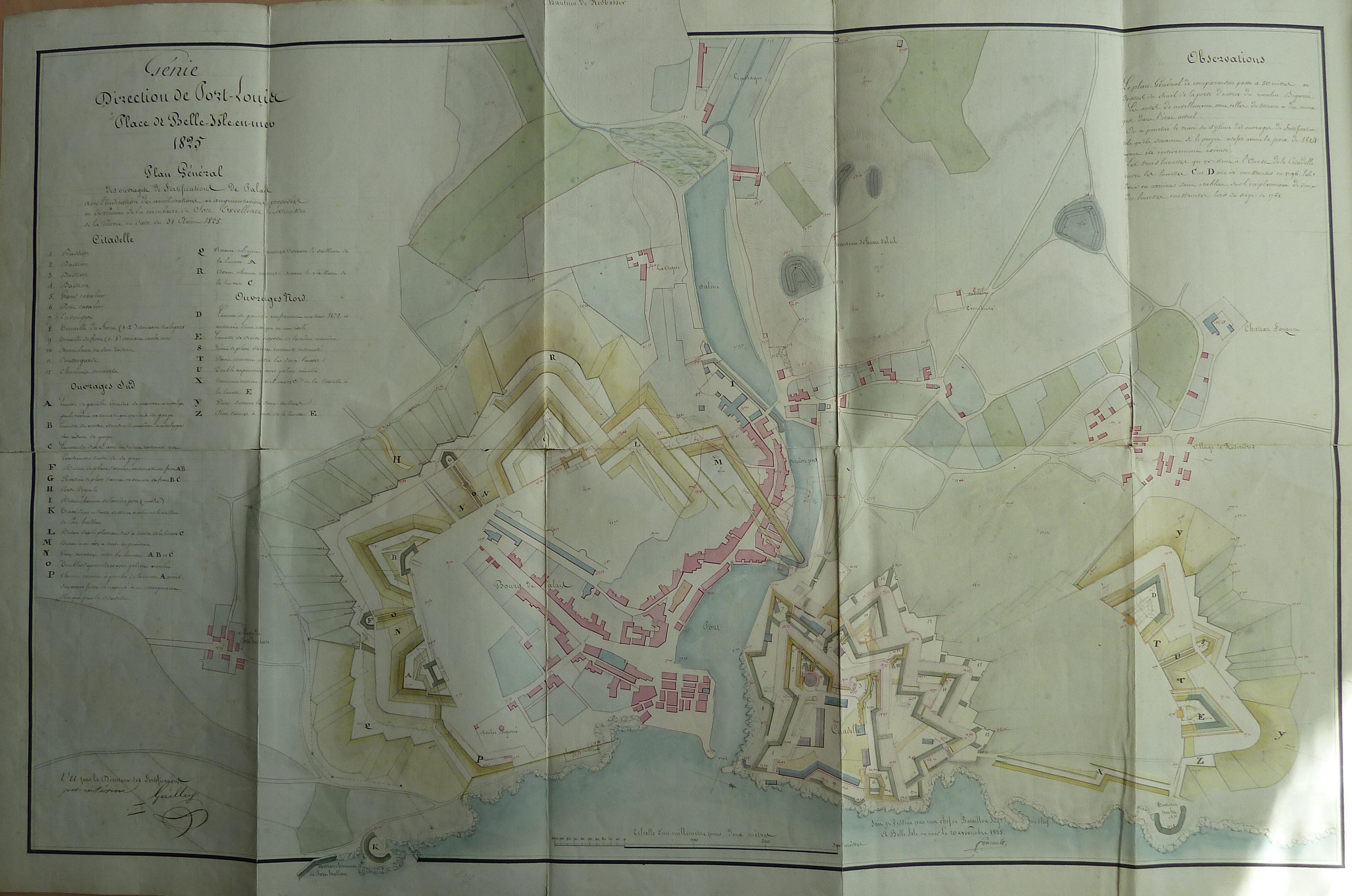 Service historique de la Défense, département Armée de Terre, Vincennes. Archives du Génie ; Article 8, Places françaises et d'Algérie : 1 VH 288, Place de Belle-Île-en-Mer, projets et dépenses annuels, 1826-1830. Direction du Génie de Port-Louis, Place de Belle-isle-en-Mer, projets pour 1826, plan général, 20 novembre 1825.