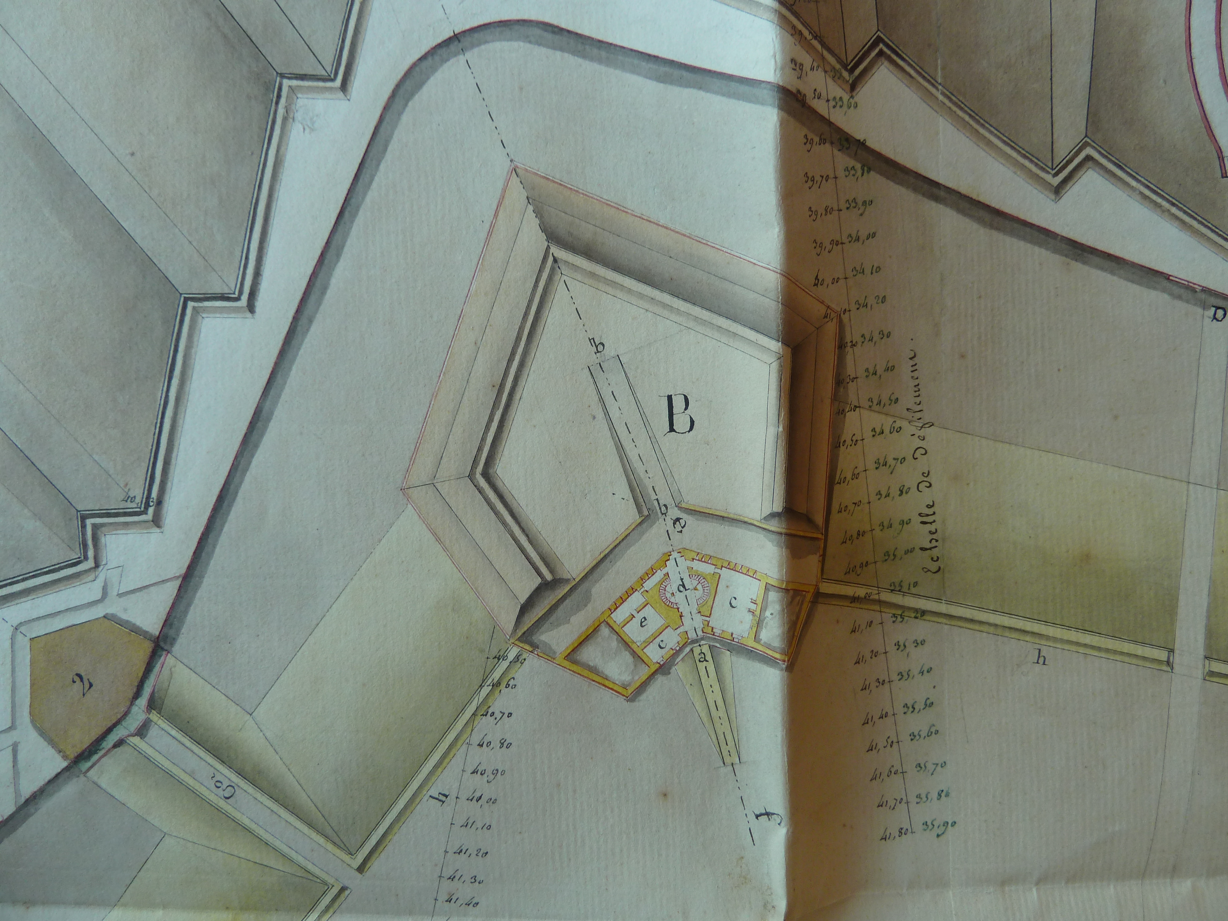 Service historique de la Défense, département Armée de Terre, Vincennes. Archives du Génie ; Article 8, Places françaises et d'Algérie : 1 VH 286, Place de Belle-Île-en-Mer, projets et dépenses annuels, 1807-1816. Direction du Génie de Port-Liberté, Place de Belle-isle-en-Mer, nouveau projet de fortifications entreprises sur le plateau au sud de la citadelle, 1809.