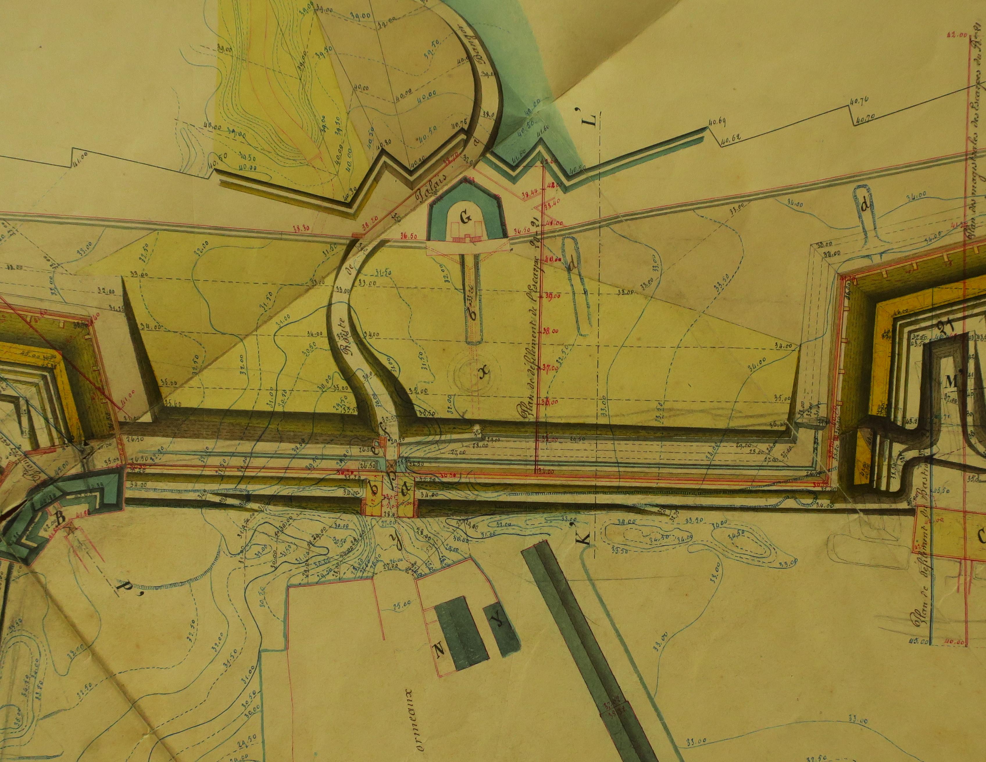 Service historique de la Défense, département Armée de Terre, Vincennes. Archives du Génie ; Article 8, Places françaises et d'Algérie : 1 VH 295, Place de Belle-Île-en-Mer, projets et dépenses annuels, 1858-1859. Direction du Génie de Brest, Place de Belle-Ile, feuille n° 6 des projets pour 1858-1859, 29 décembre 1857.
