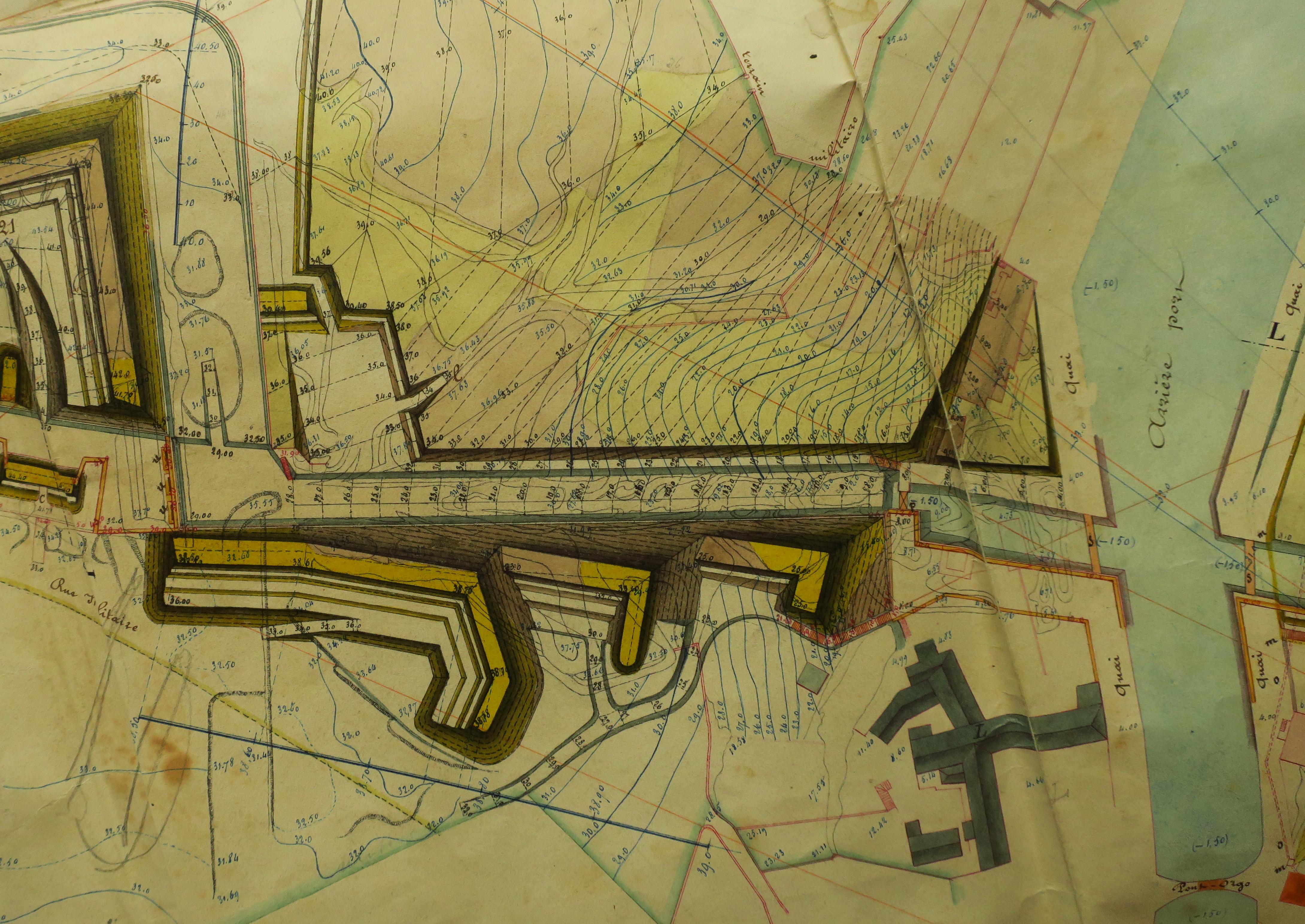 Service historique de la Défense, département Armée de Terre, Vincennes. Archives du Génie ; Article 8, Places françaises et d'Algérie : 1 VH 296, Place de Belle-Île-en-Mer, projets et dépenses annuels, 1860-1861. Direction du Génie de Brest, Place de Belle-Ile, feuille n° 8 des projets pour 1860-1861, 14 juillet 1860.