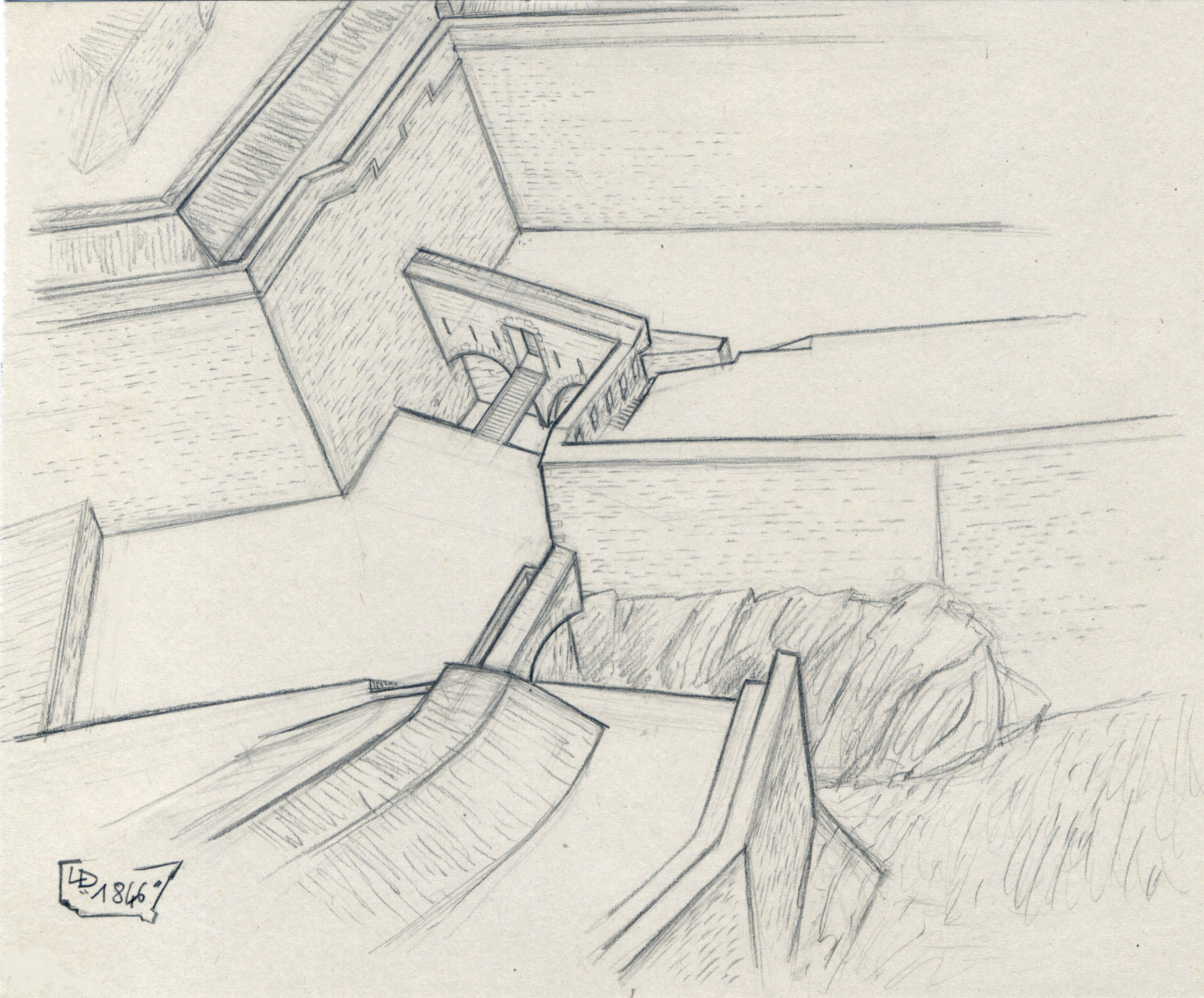 Le Palais, citadelle, haha, évocation vers 1870, par Lionel Duigou.Immatriculation