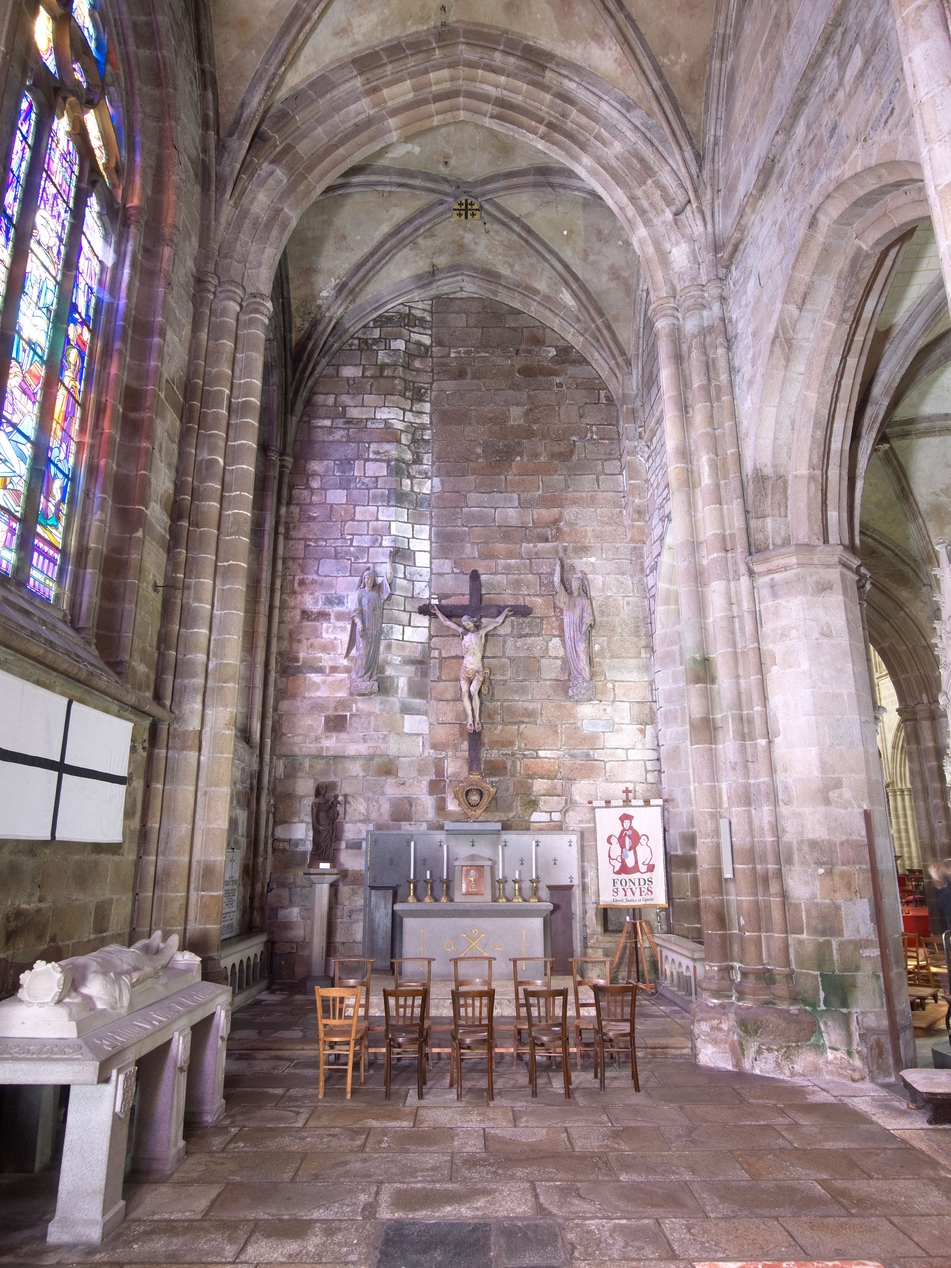 Tréguier : cathédrale Saint-Tugdual, chapelle du Duc, vue générale en direction de l'autel. A gauche, tombeau et gisant de Jean V sculptés par Armel BeaufilsImmatriculation