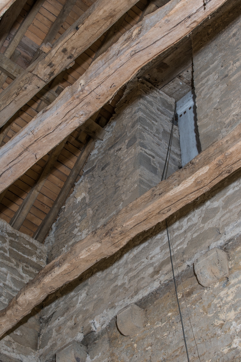 Vue intérieure, logis secondaire, vue intérieure, 2ème étage, porte percée tardivement (revers mur nord)Immatriculation