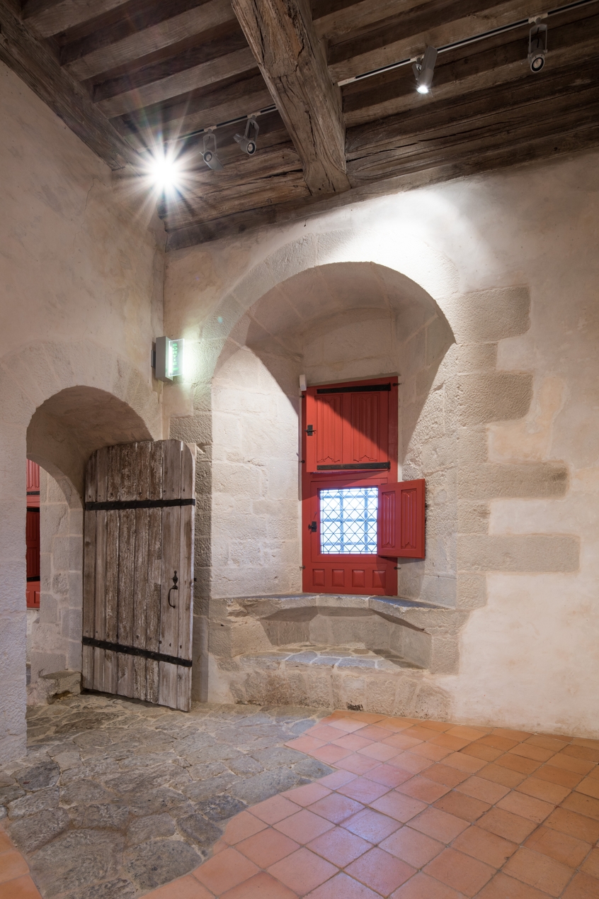 Logis seigneurial, chambre au-dessus du passage voûté, fenêtre donnant sur la courImmatriculation
