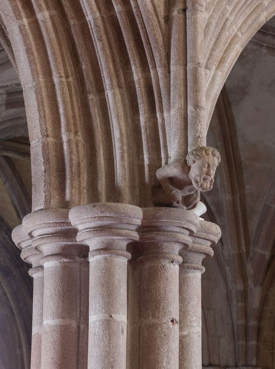 Détail de l'un des piliers orné d'une tête humaineImmatriculation