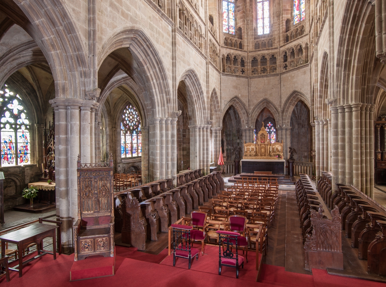 Vue générale vers le choeur et le maître-autel. La cathédrale abrite un ensemble de stallesImmatriculation