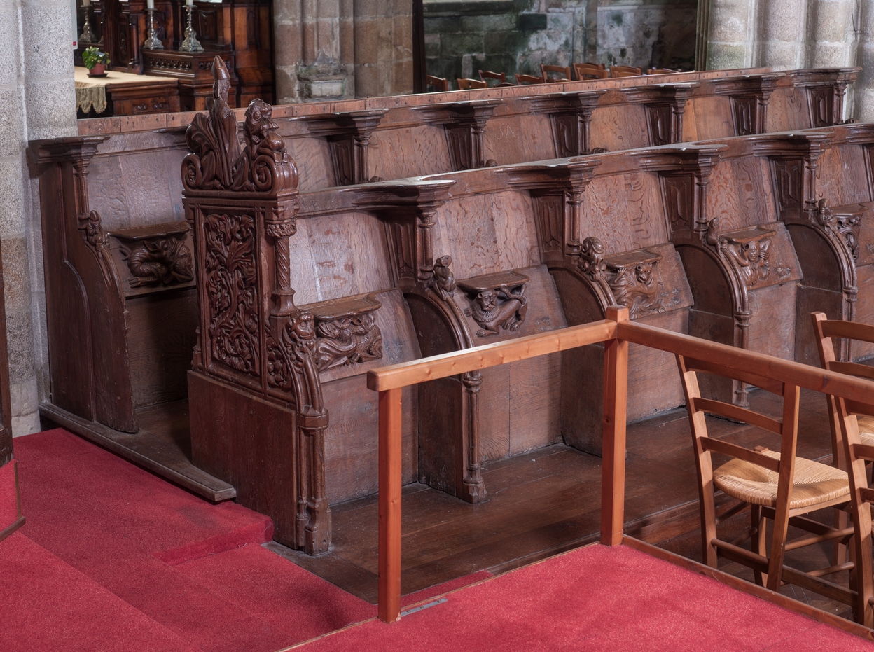 Chœur, détail de l'ensemble de 48 stalles (oeuvre de Gérard Dru et Tugdual Kergus, 1508–1511)Immatriculation