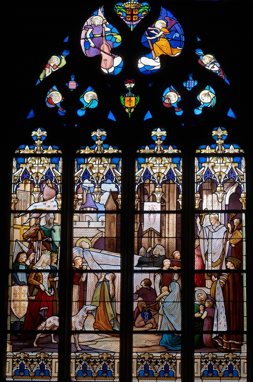 Minihy-Tréguier, rue de l'Église : église Saint-Yves, détail de l'un des vitrauxImmatriculation