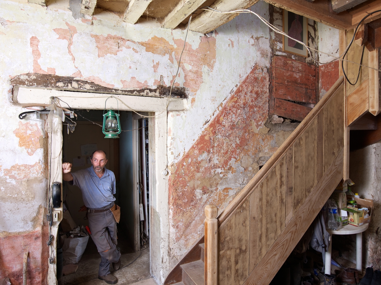 Logis principal. Vestibule d'entrée. Mur de refend et escalier moderneImmatriculation