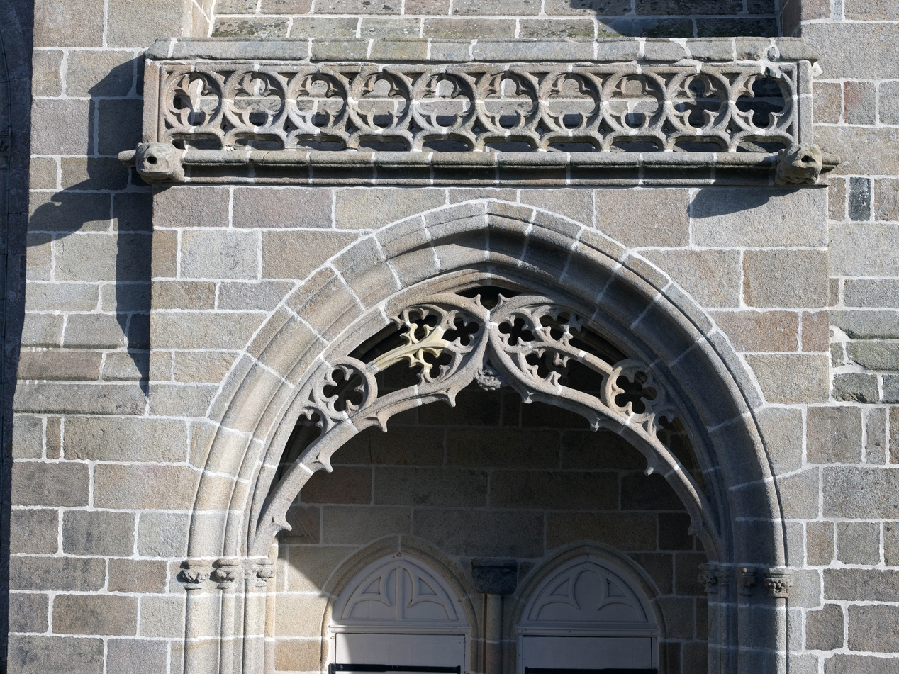 Minihy-Tréguier, rue de l'Église : église Saint-Yves, élévation nord, détail du porche couronné de quadrilobesImmatriculation