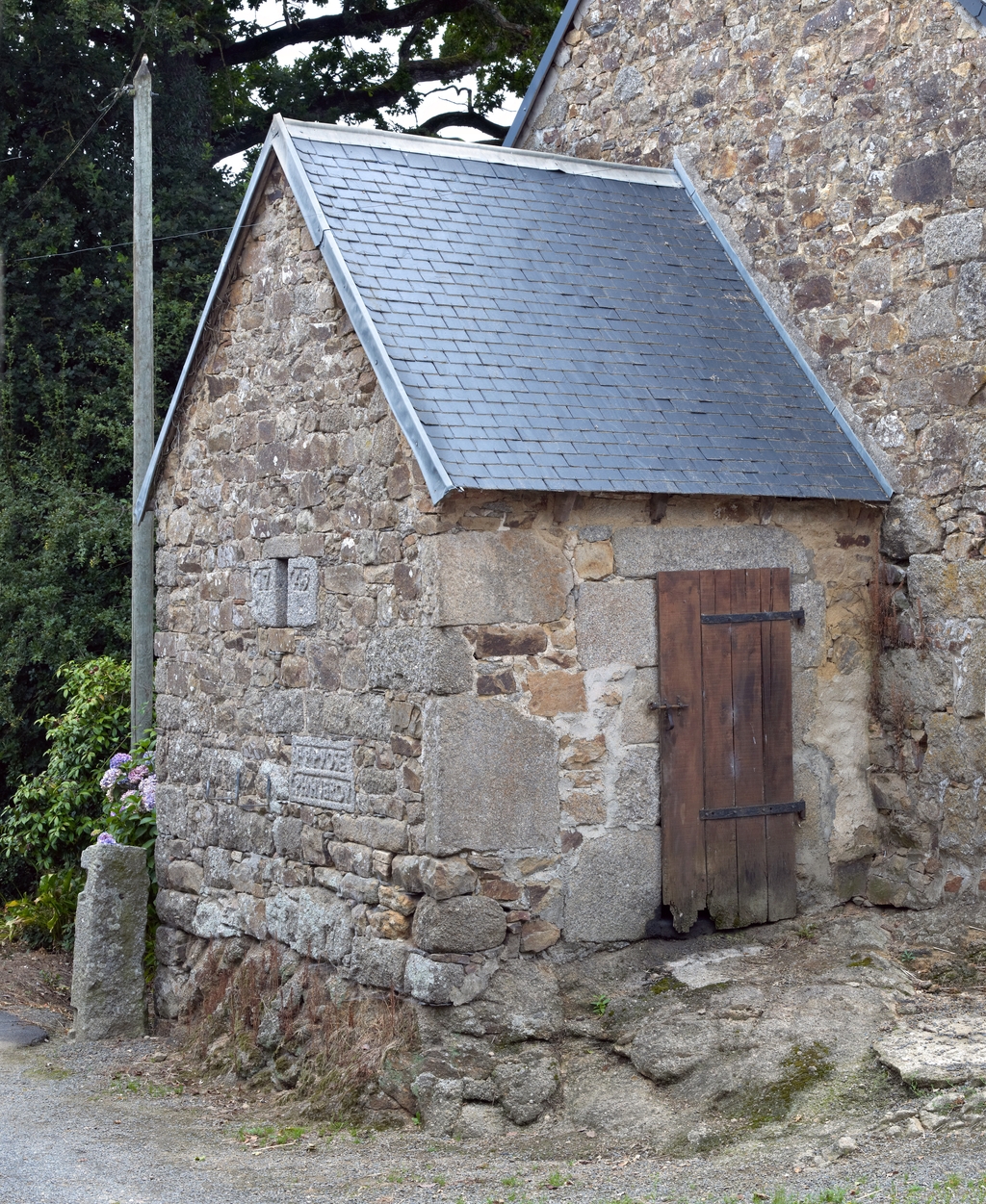 Prat, Goaz an Floc'h : dépendance. Son pignon comporte le millésime 1749 et l'inscription "F:F:P: YOSEPH [Joseph] HVEROV [Huerou]"Immatriculation