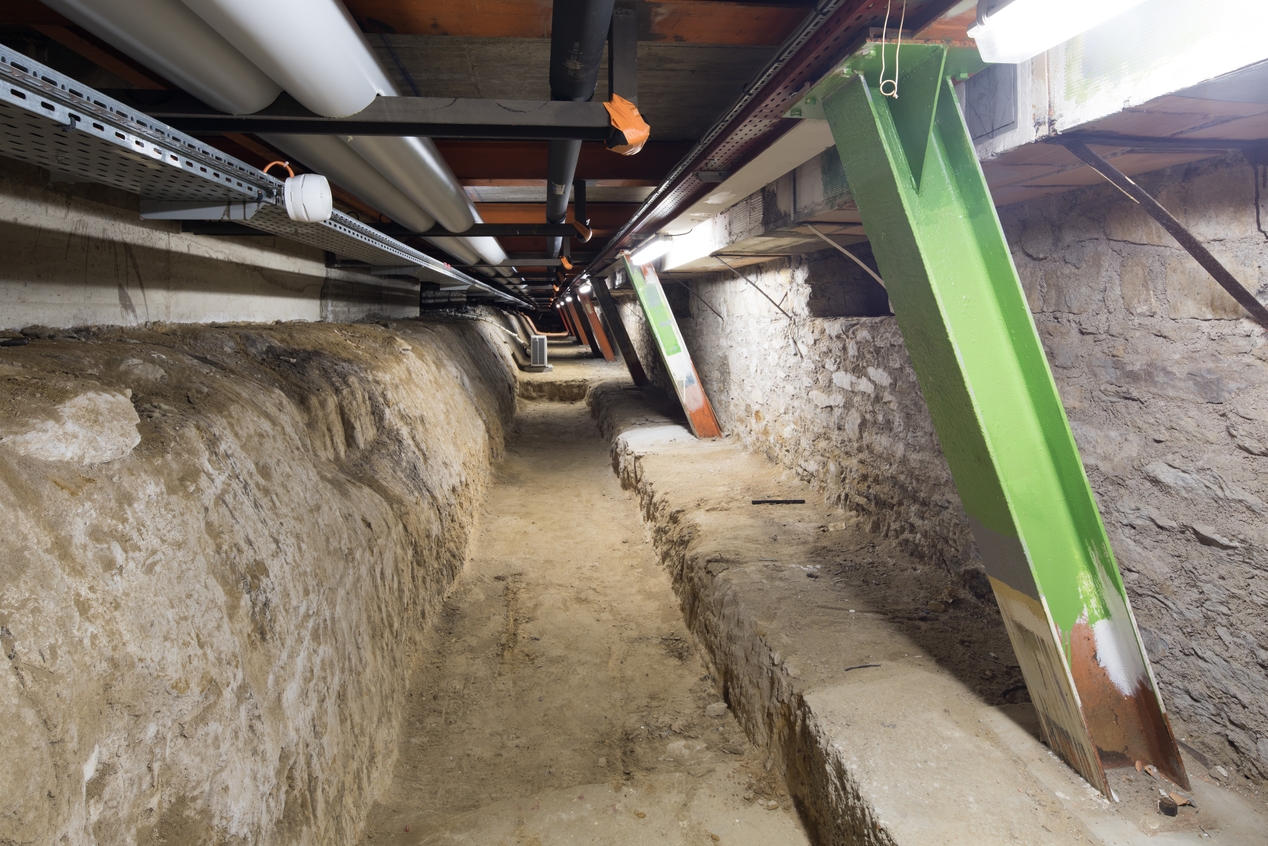 Soubassement, soutènement au-dessous d'une aile de salle des coffresImmatriculation
