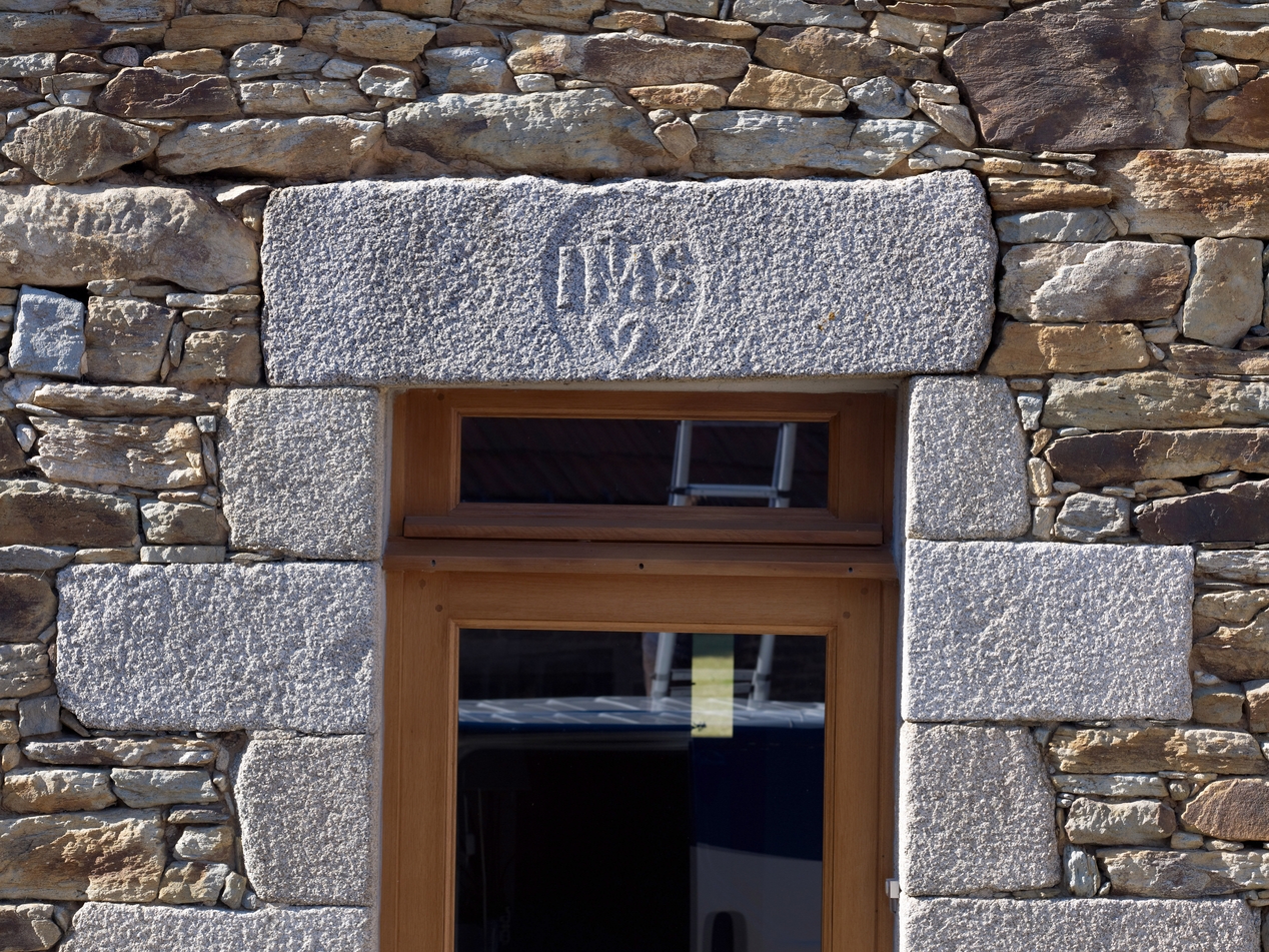 Logis ouest : monograme du Christ 'IHS" sur le linteau de la porte d'entréeImmatriculation