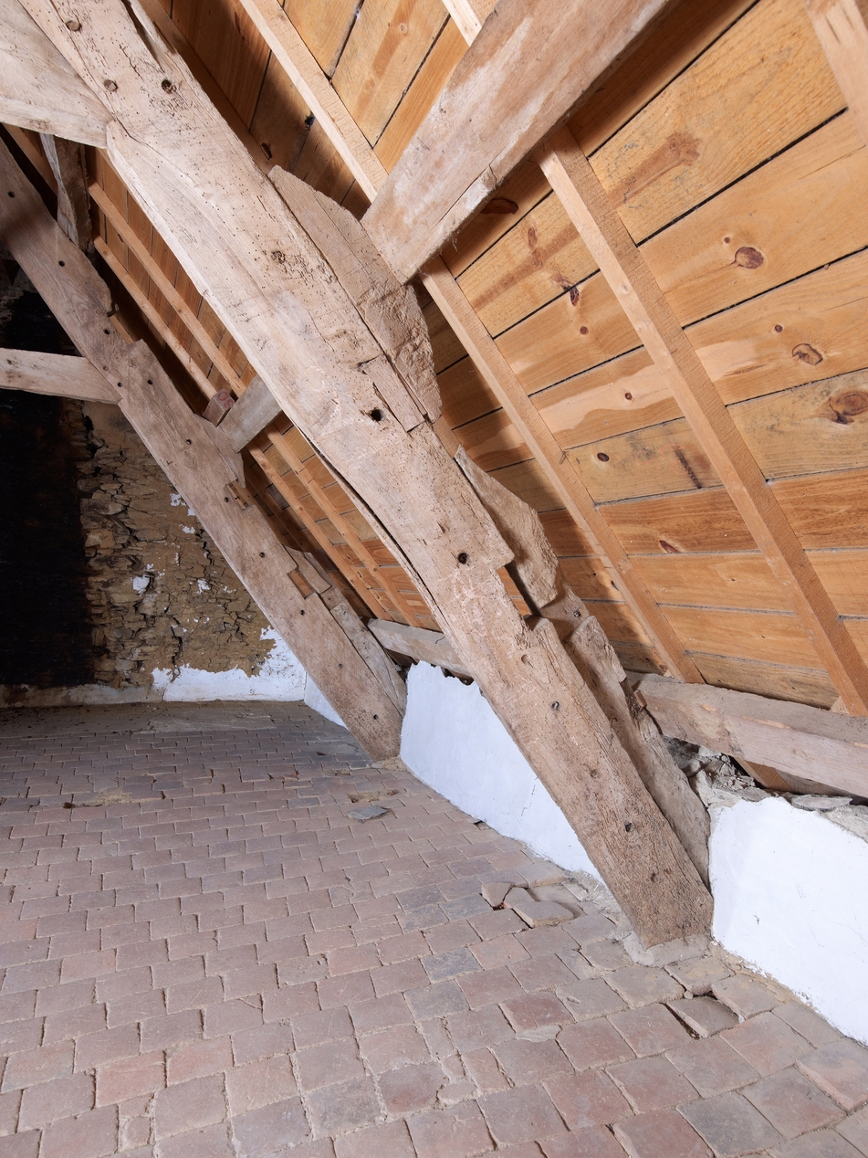 Etage de comble, vue de détail de la charpenteImmatriculation
