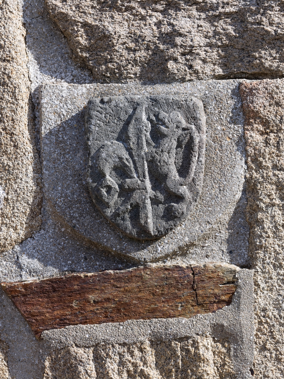 Elévation ouest, détail des armoiries intégrées dans la maçonnerie à droite de la porteImmatriculation