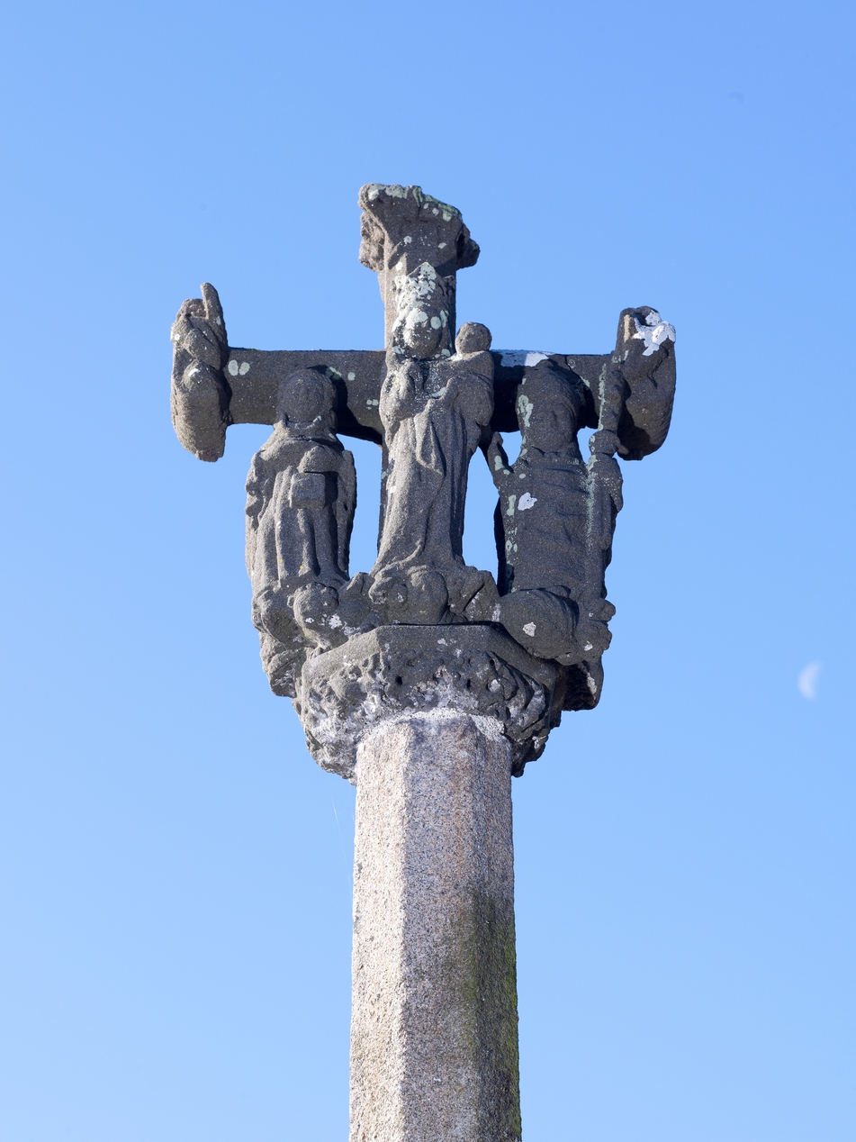 Minihy-Tréguier : croix de cimetière, détail de la face est, Vierge à l'enfantImmatriculation