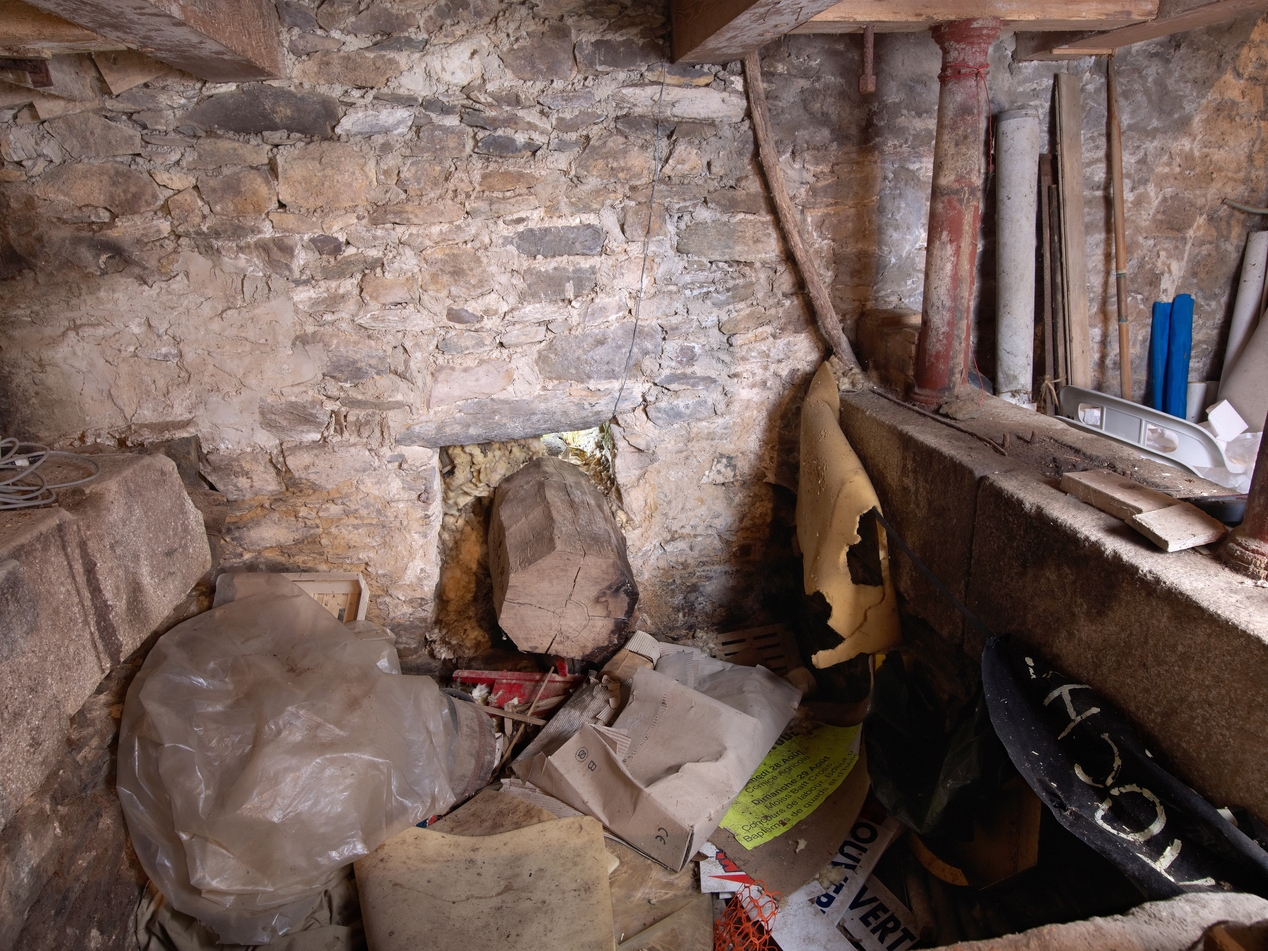 Minihy-Tréguier, le Guindy : moulin de Troguindy, vue intérieure, détail de l'axe en bois de la roueImmatriculation
