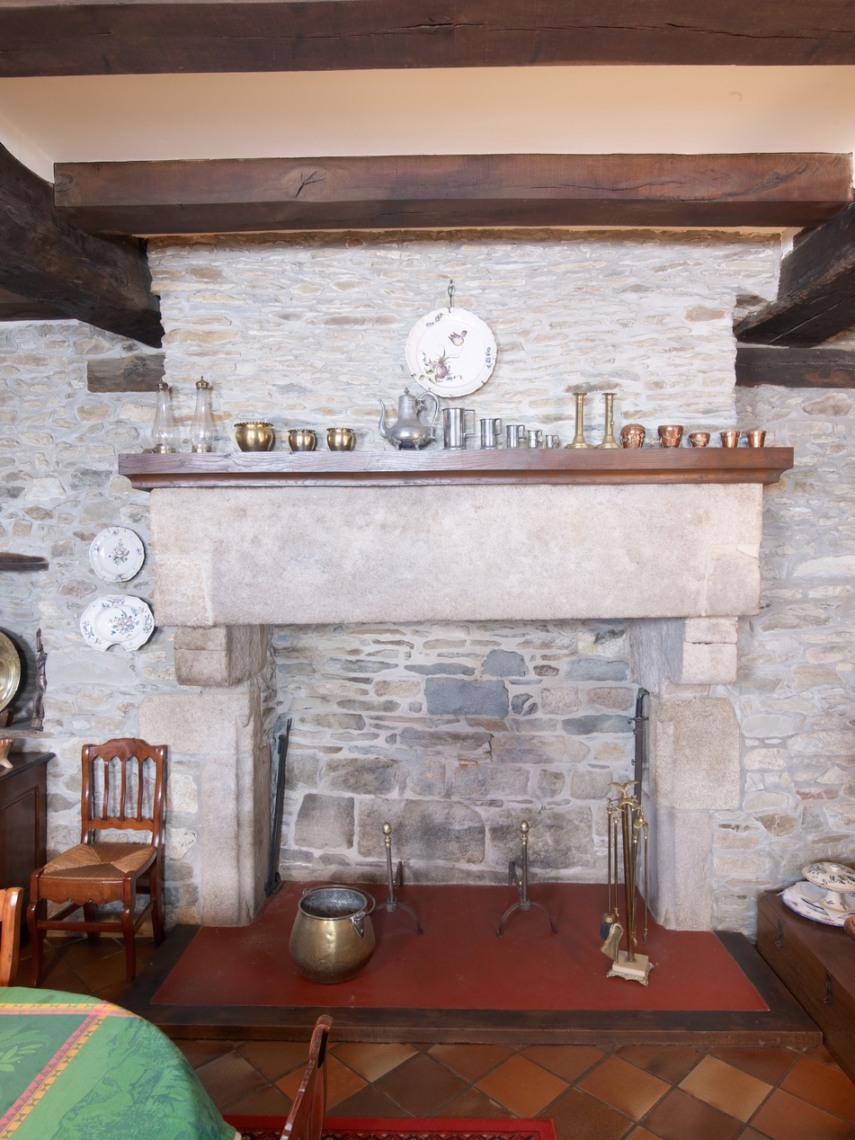 Tréguier, 12 rue Colvestre : maison à pan de bois, détail de la cheminéeImmatriculation