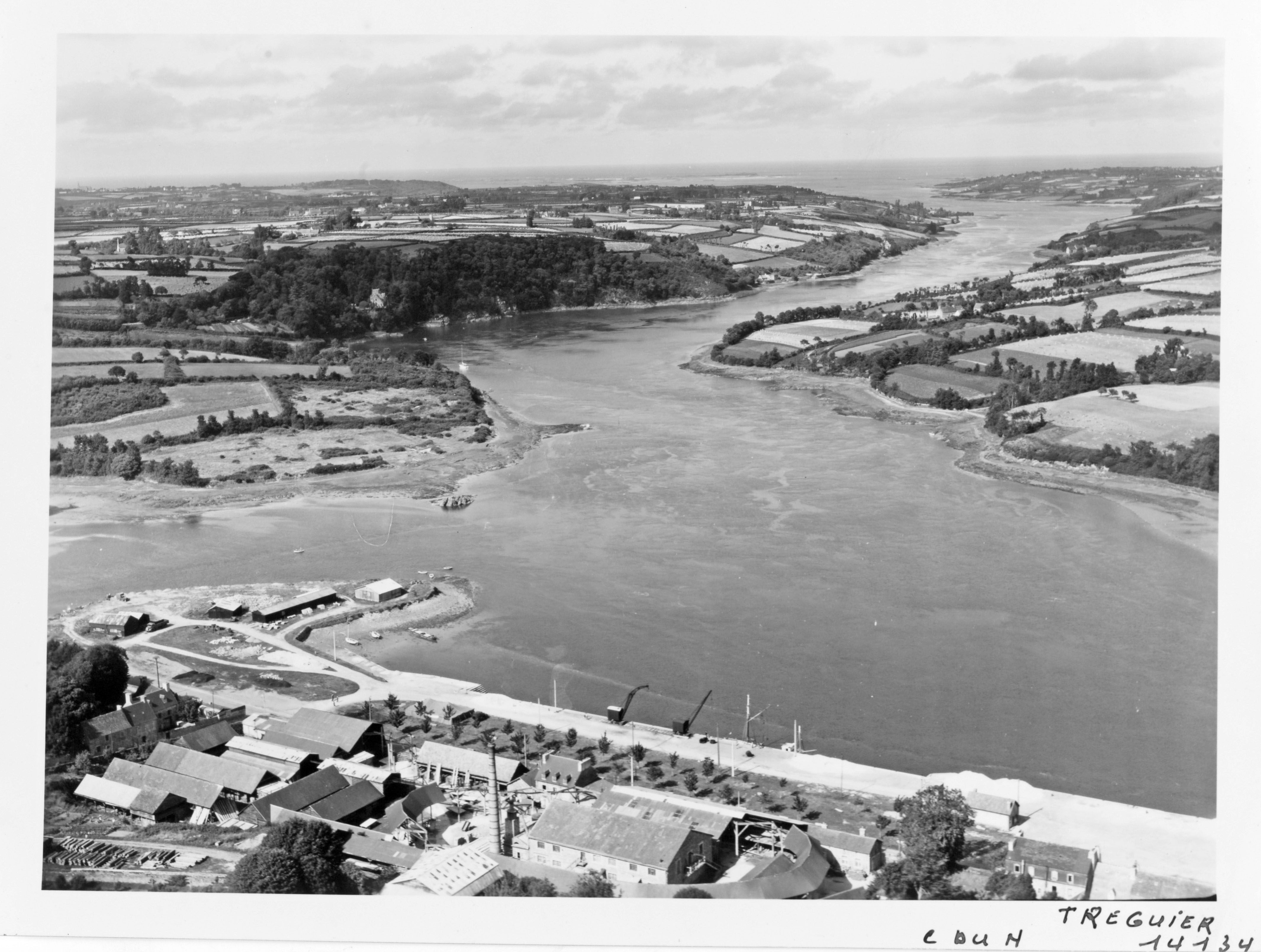 Tréguier : vue aérienne oblique de la ville, le port par Roger Henrard, vers 1954. En arrière plan : l'embouchure de la rivière de Tréguier (Archives départementales des Côtes-d'Armor, collection photographique Henrard : RAD022_26Fi_461)Immatriculation