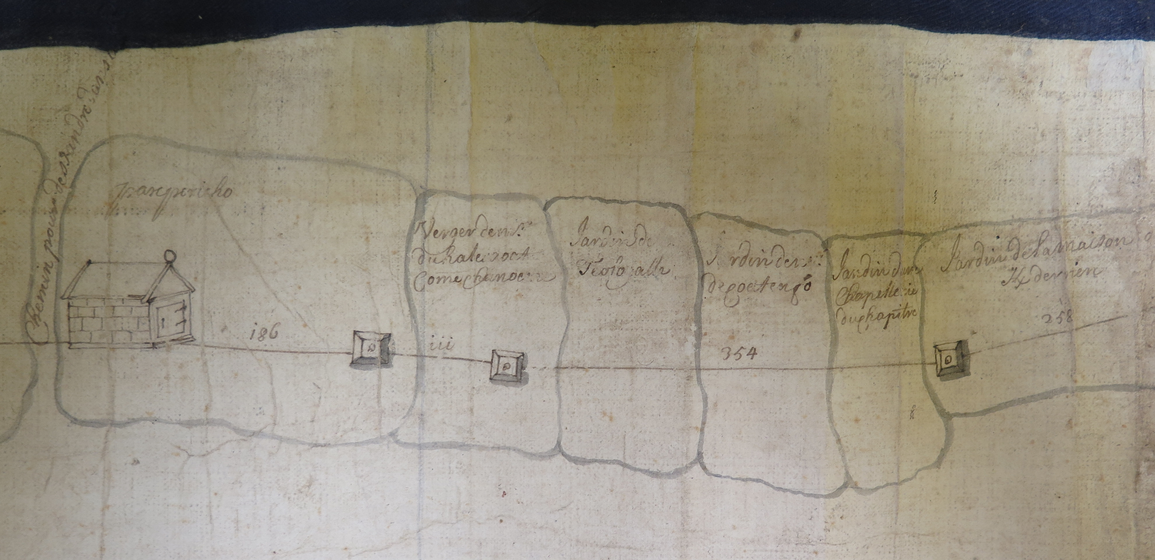 Détail du plan de la conduite d'eau de la ville de Tréguier par Charles Symon, maître peintre, 1610 (Archives communales de Tréguier de Tréguier, 1Fi8)Immatriculation