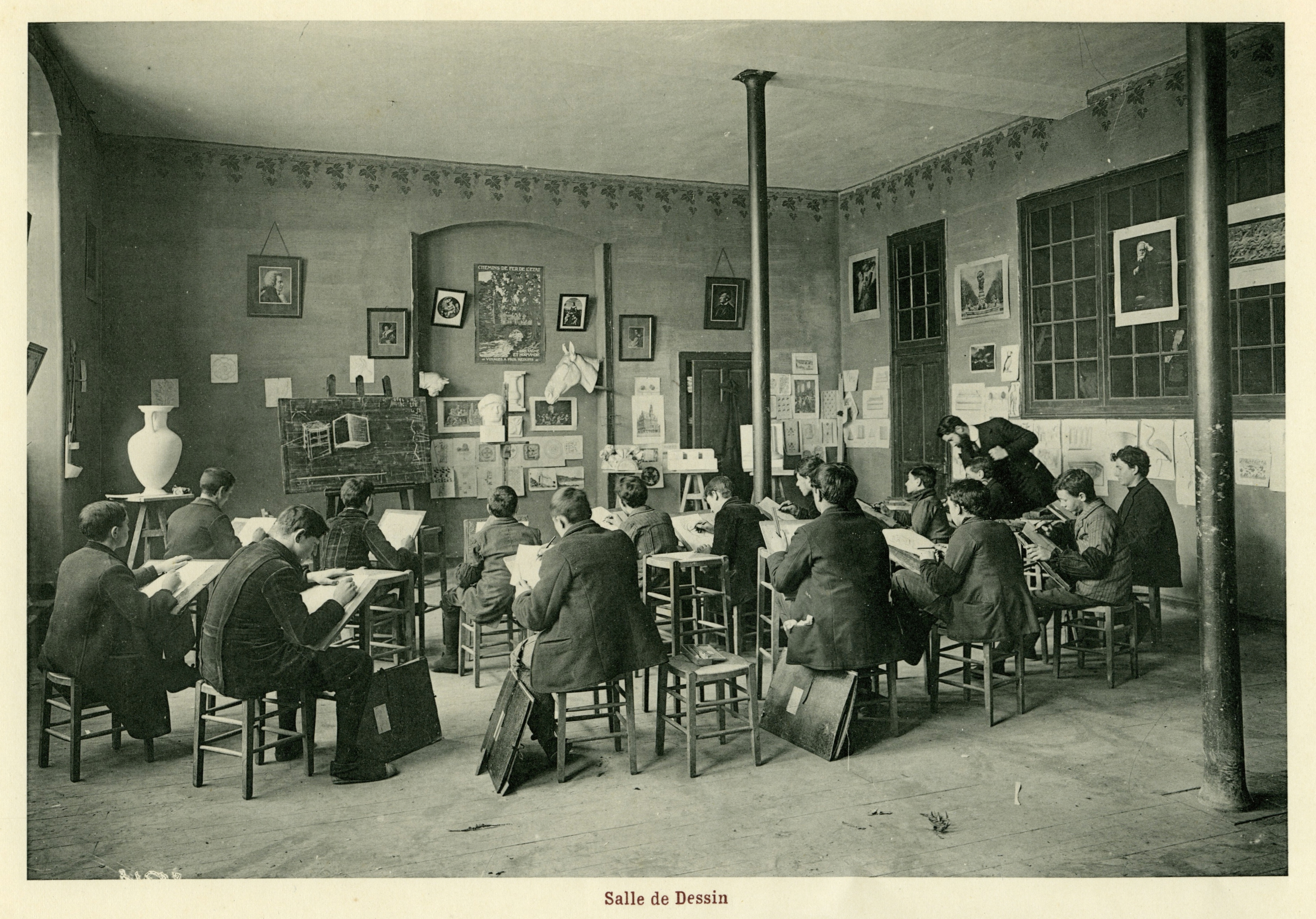 Tréguier : petit séminaire devenu école primaire supérieure de garçons, salle de dessin, plaquette de présentation de l'école, année scolaire 1913-1914 (collection iconographique réunie par Michel Le Cam, ancien professeur au Lycée Joseph Savina)Immatriculation