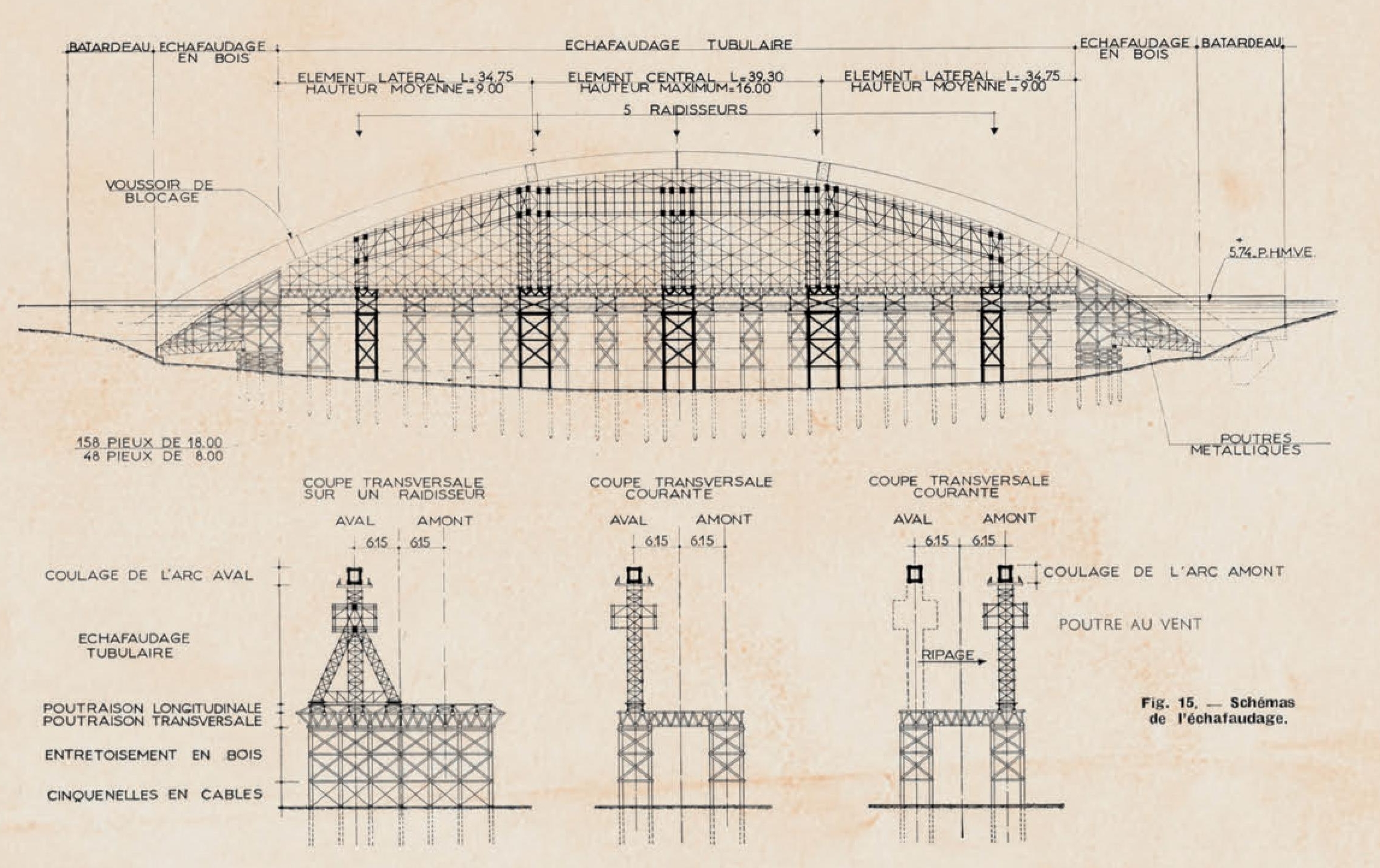 Tréguier : pont Canada, plan et coupes schématiques de l'échafaudage (source : Travaux, revue mensuelle, n° 245, mars 1955)Immatriculation