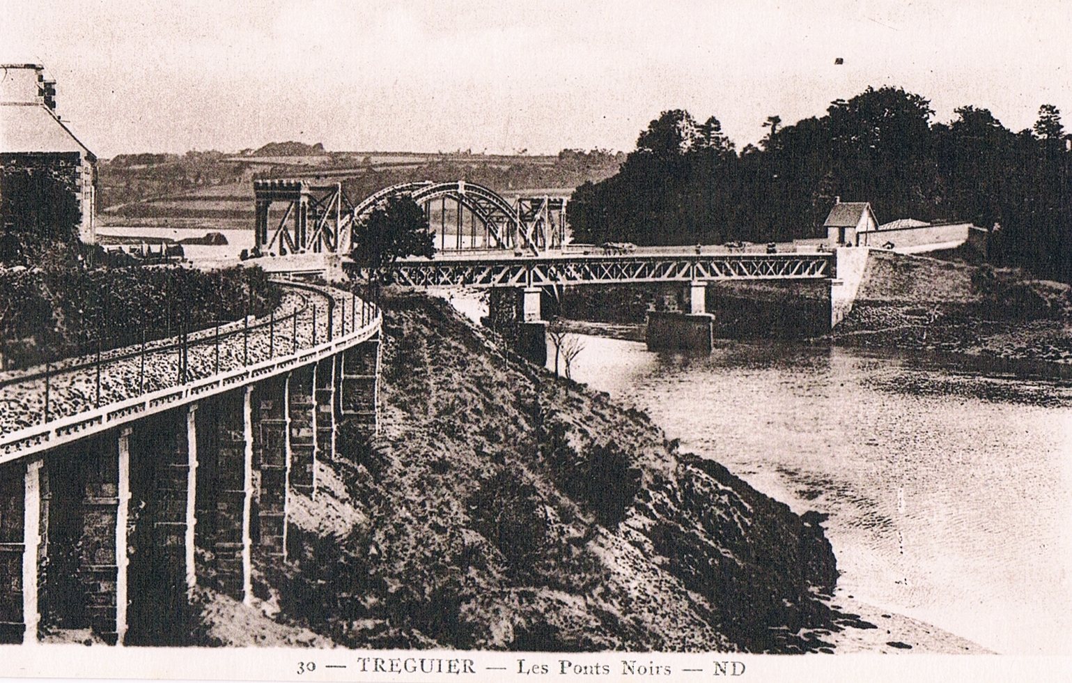 Tréguier : les Ponts noirs, pont routier et pont ferroviaire de la ligne Tréguier - Perros-Guirec, carte postale (collection particulière)Immatriculation