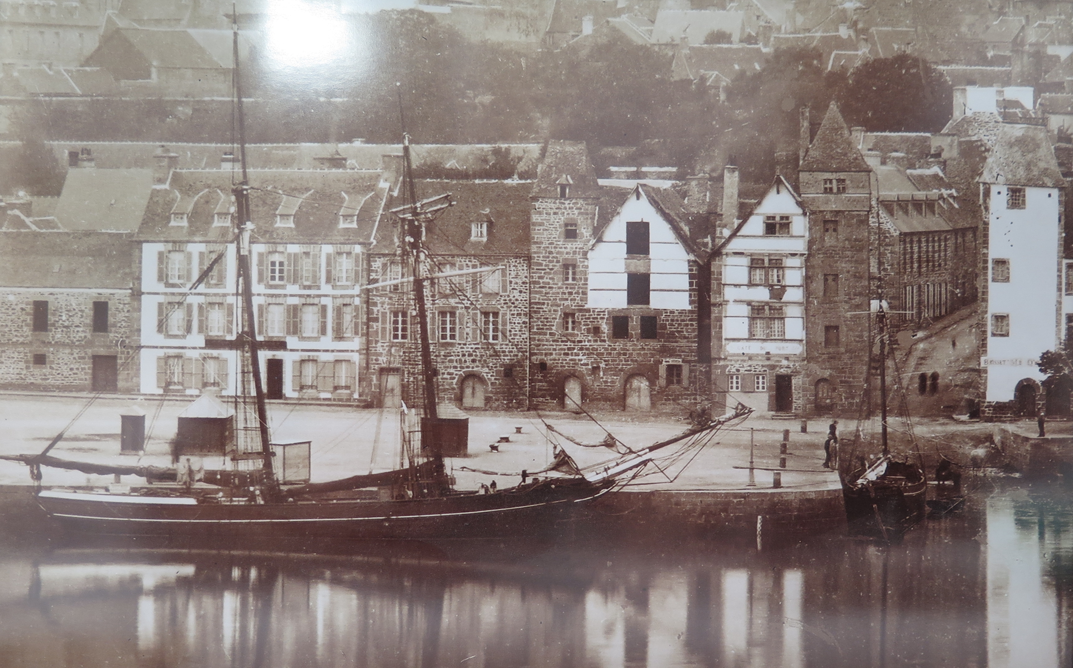 Tréguier : vue du port et du front portuaire avec ses maisons d'armateur ou de négociant, photographie, fin du 19e siècle (collection particulière)Immatriculation