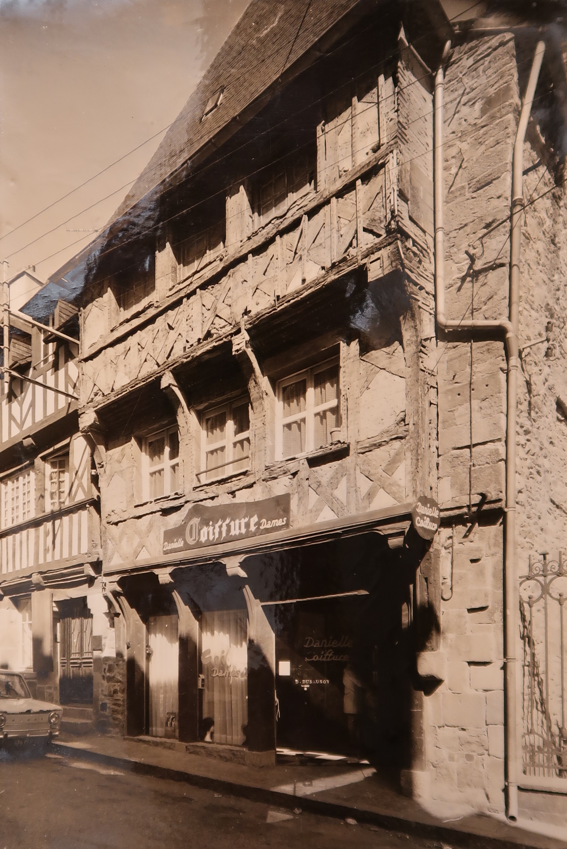 Tréguier, 12 rue Colvestre : maison à pan de bois, façade sud sur rue, 1966 (archives de la Conservation régionale des Monuments historiques de Bretagne)Immatriculation
