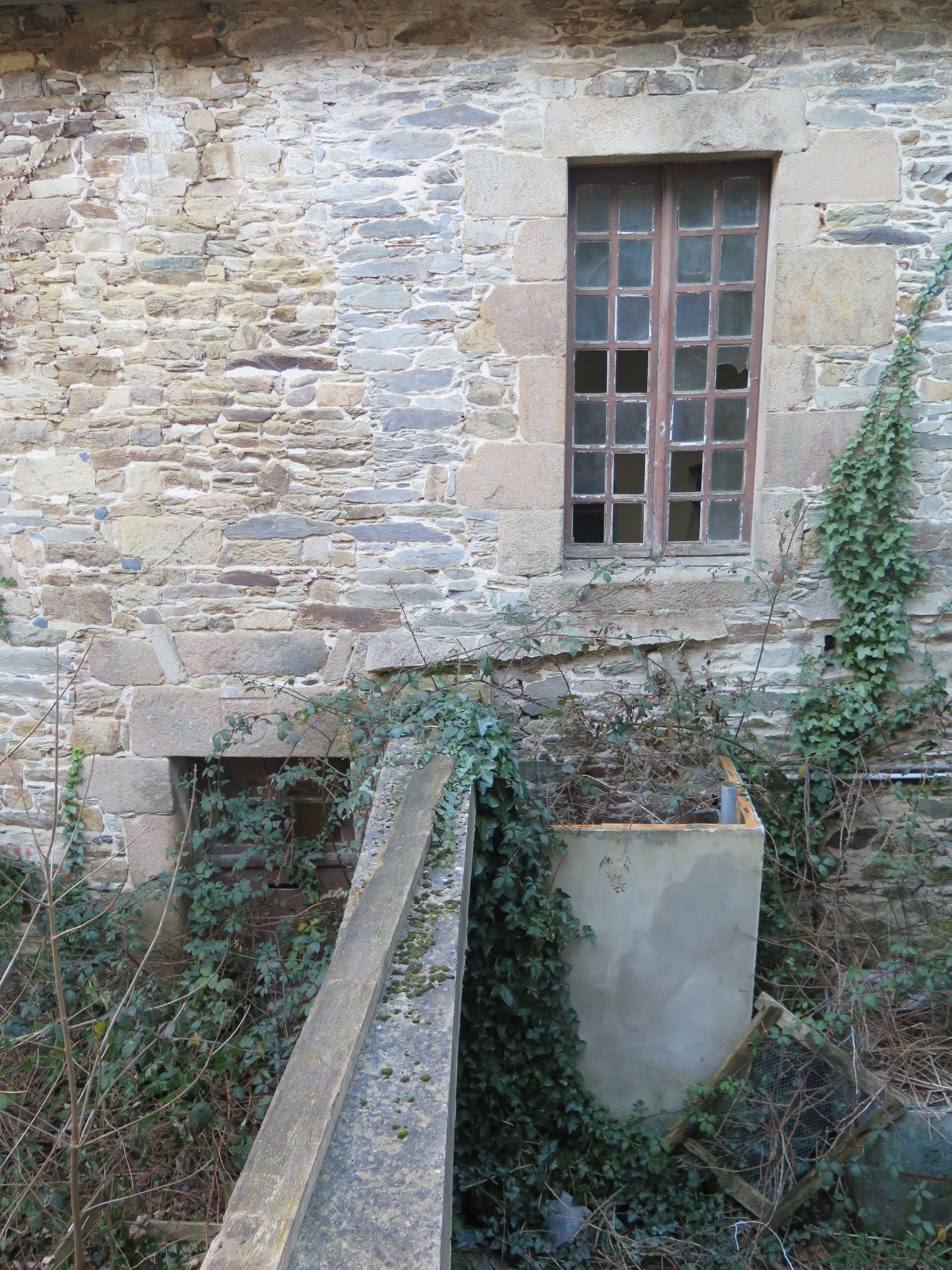 Corps de logis secondaire, élévation sud-est visible depuis le jardin de l'hôtel Le Saint Yves. Détail de la porte de la cuisine (armoriée) et d'une fenêtre de l'étageImmatriculation