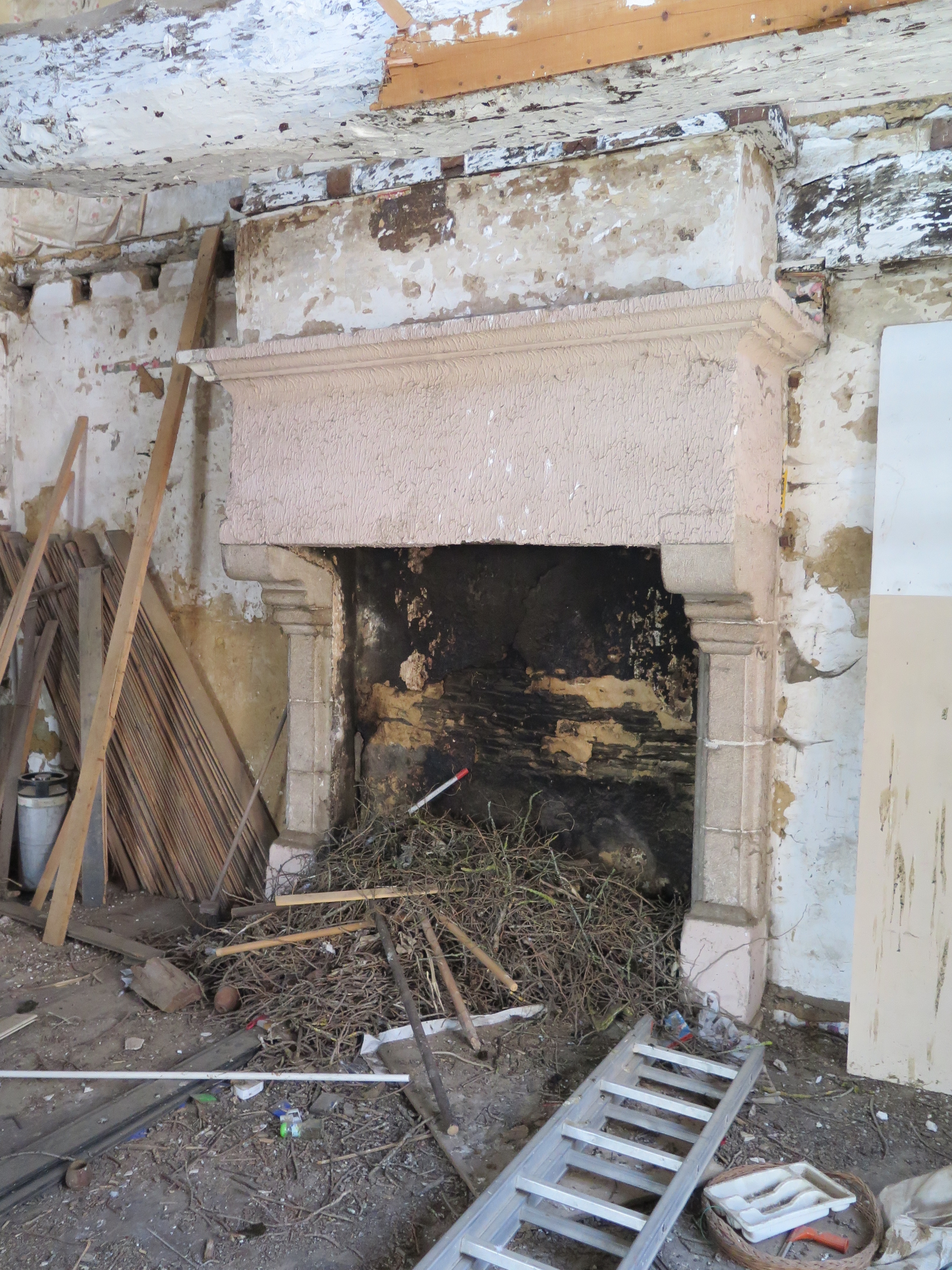 Tréguier, rue Renan - quai du Jaudy (7 place du Général de Gaulle) : maison d'armateur ou de négociant, premier étage, cheminée du pignon ouest (visite réalisée le 11 avril 2017 avec la mairie de Tréguier)Immatriculation
