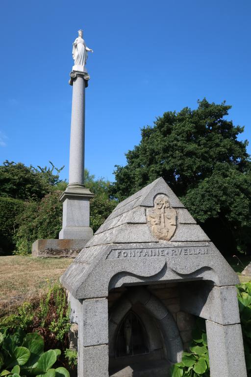 Statue sur colonne de la Vierge et la nouvelle fontaine Ruellan.Immatriculation