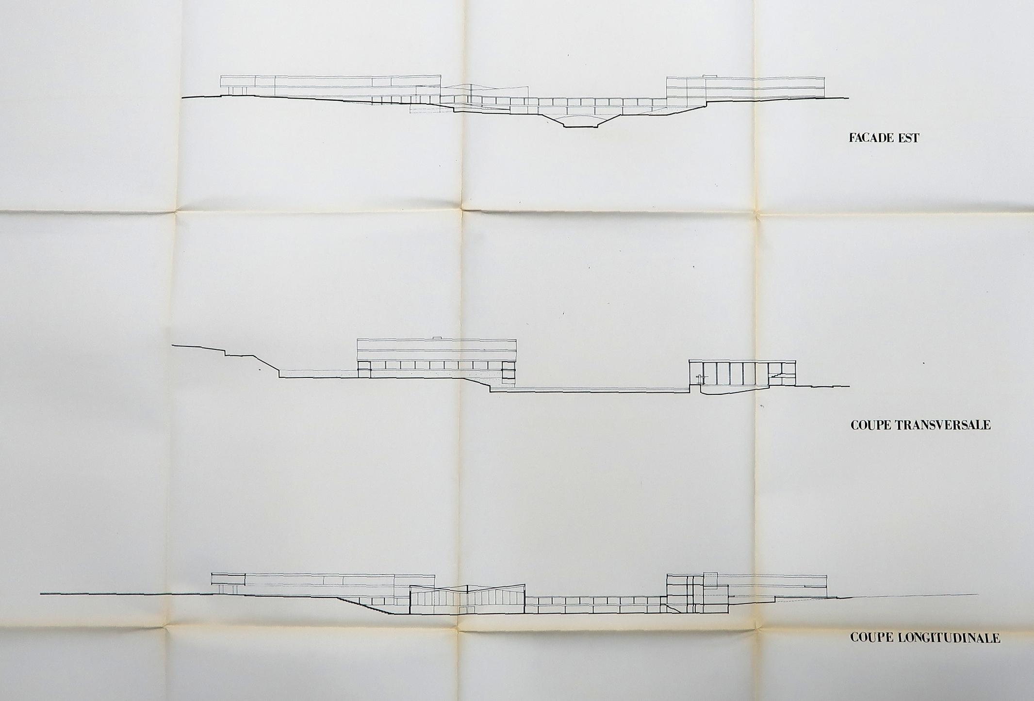 Coupes façades. Ce document montre bien l'adaptation à la topographie du terrain.Immatriculation