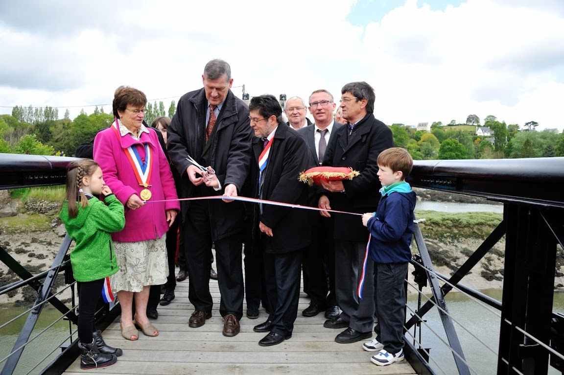 Plouguiel - Tréguier : pont dit "passerelle Saint-François", 20 mai 2013, inauguration de la reconstruction par Pierre Simunek, sous-préfet, Rollande Clochet, maire de Plouguiel et Michel Sohier, maire de Tréguier (photographie Déclic Armor)Immatriculation
