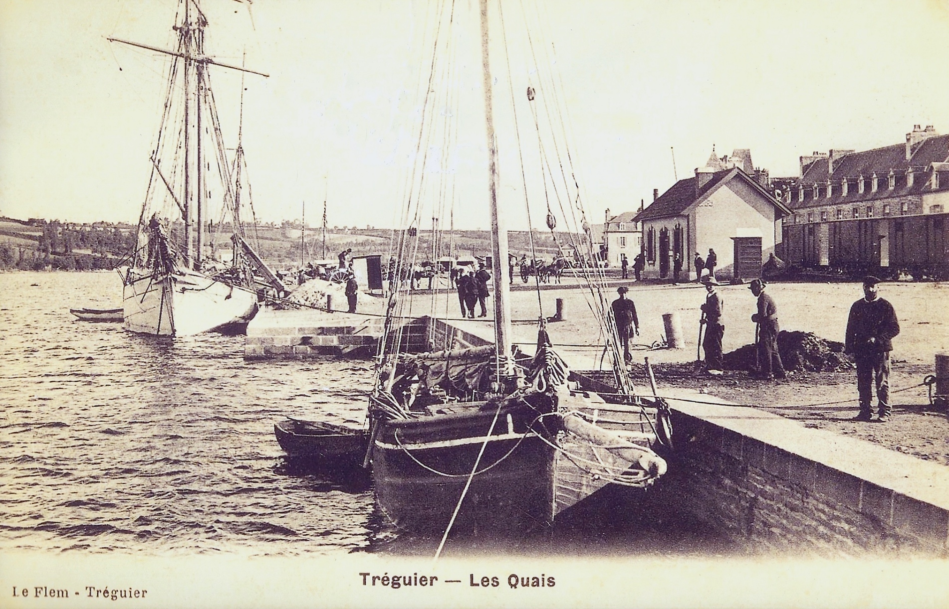 Tréguier : les quais, carte postale Le Flem (collection particulière). Tas de sable sur le quai neuf au début du 20e siècleImmatriculation