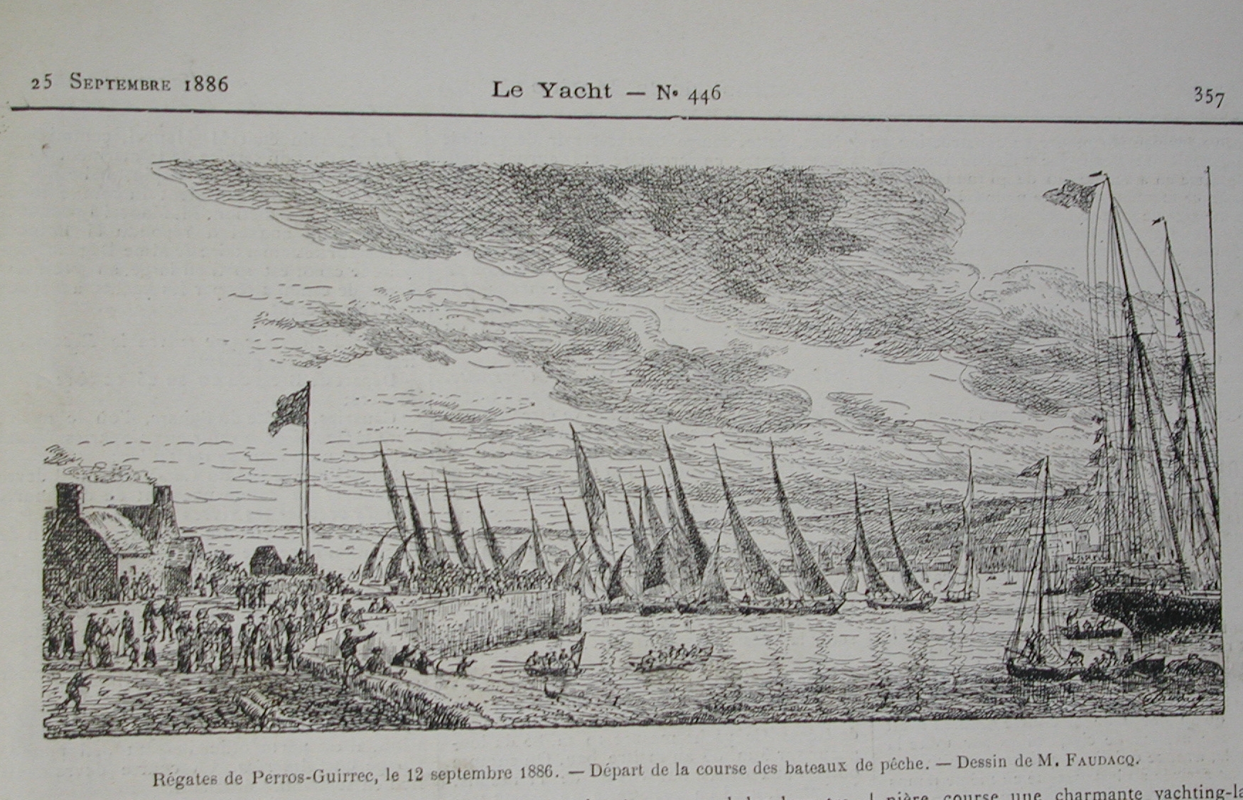 Scène de régate à Perros-Guirec, gravure Le Yacht, septembre 1886 (Faudacq)Immatriculation