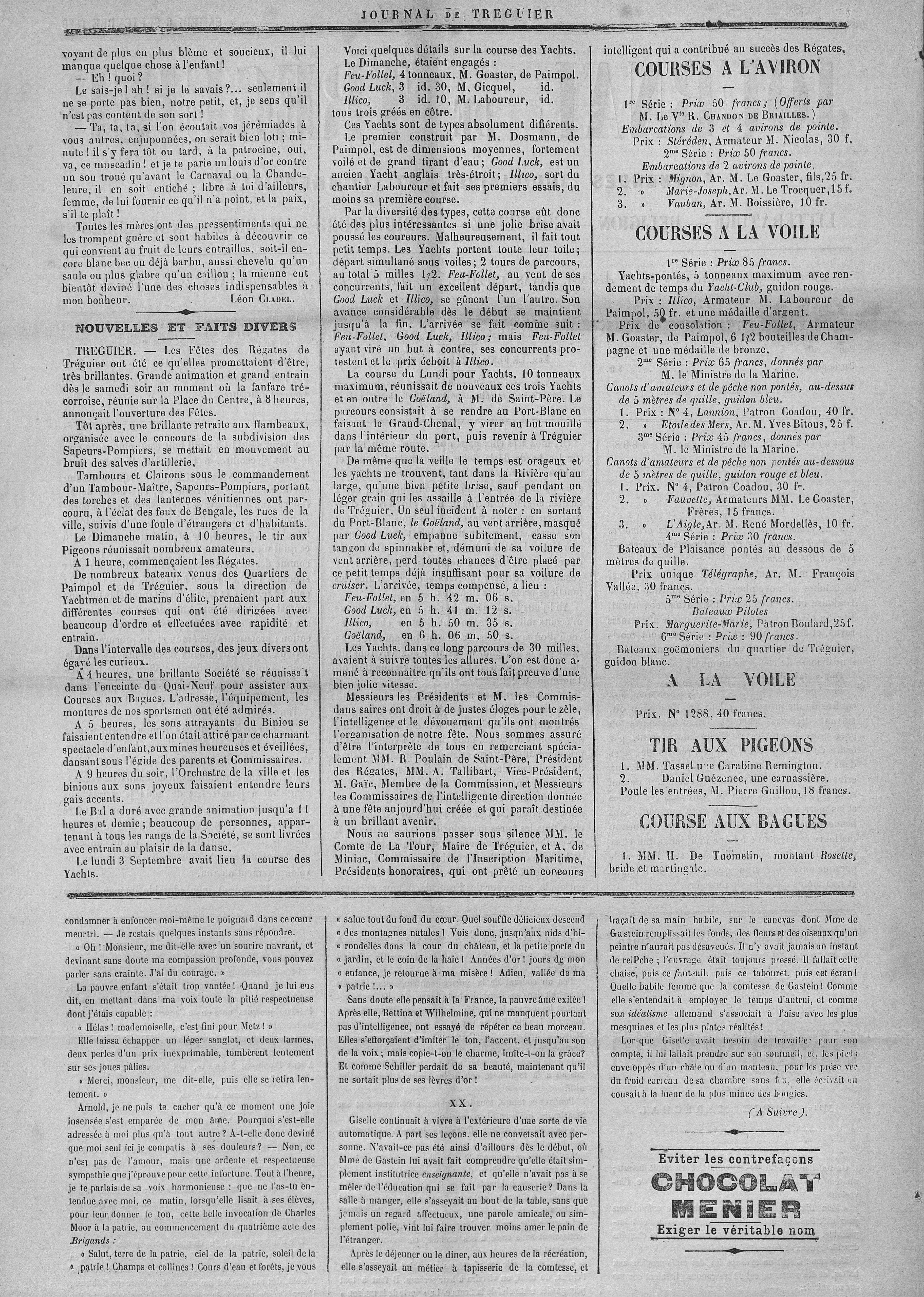 Extrait du Journal de Tréguier, 1888, courses à la voile et aux avironsImmatriculation