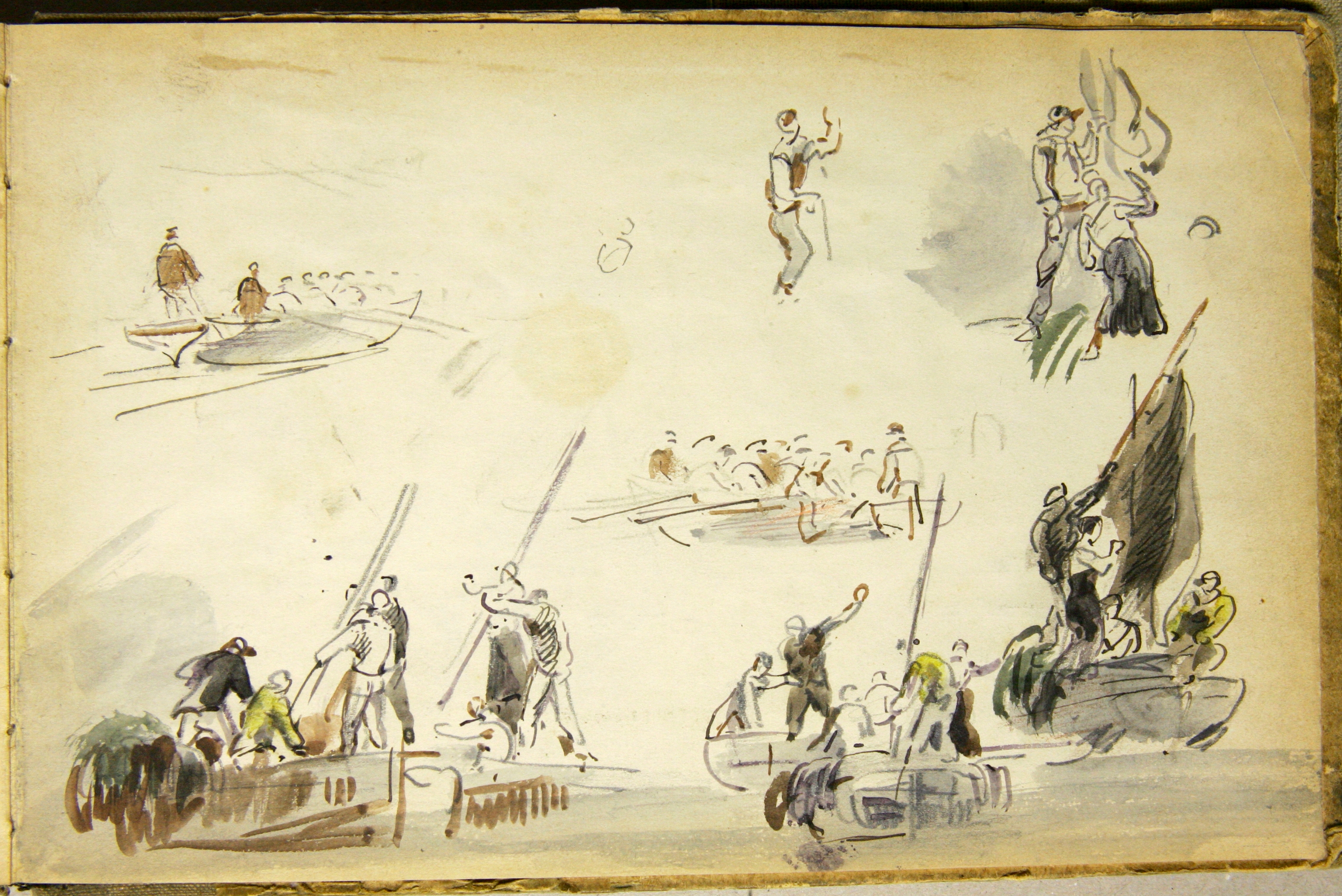 Manoeuvres de mât à bord d’un misainier afin de manoeuvrer facilement aux avirons, dessin aquarellé (Faudacq)Immatriculation