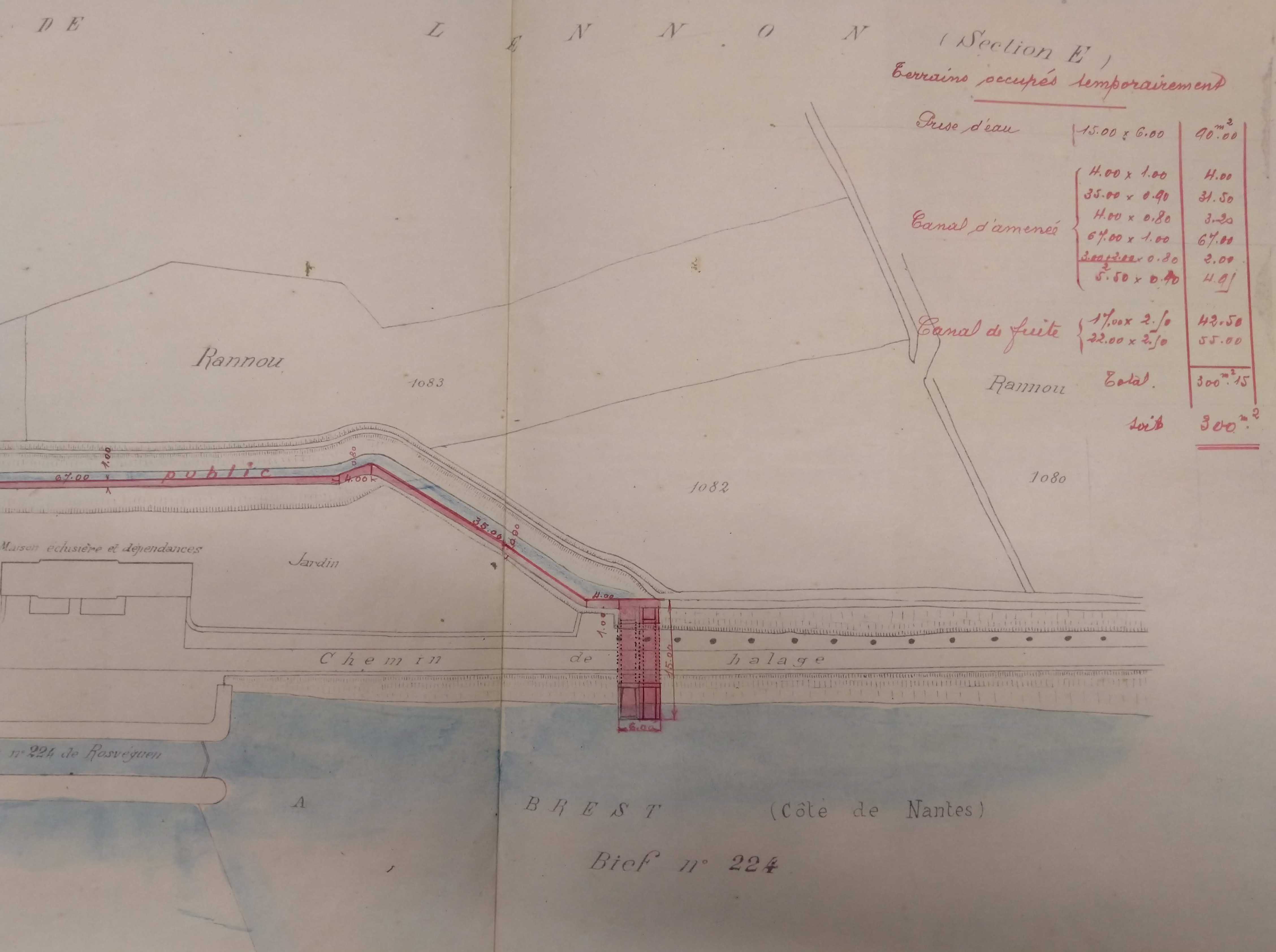 plan de la centrale hydro-électrique de Rosvéguen, demande prise d'eau. AD. 3 S 50Immatriculation