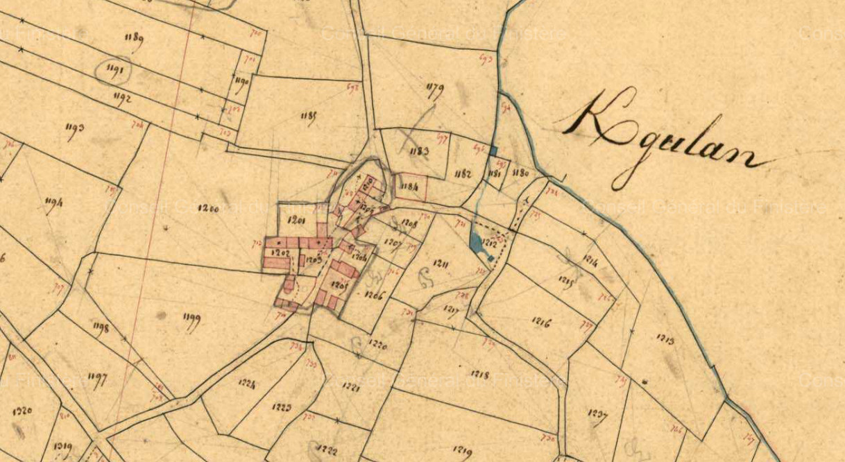 Village de Kergulan, cadastre ancien de la commune de Goulien, 1836.Immatriculation
