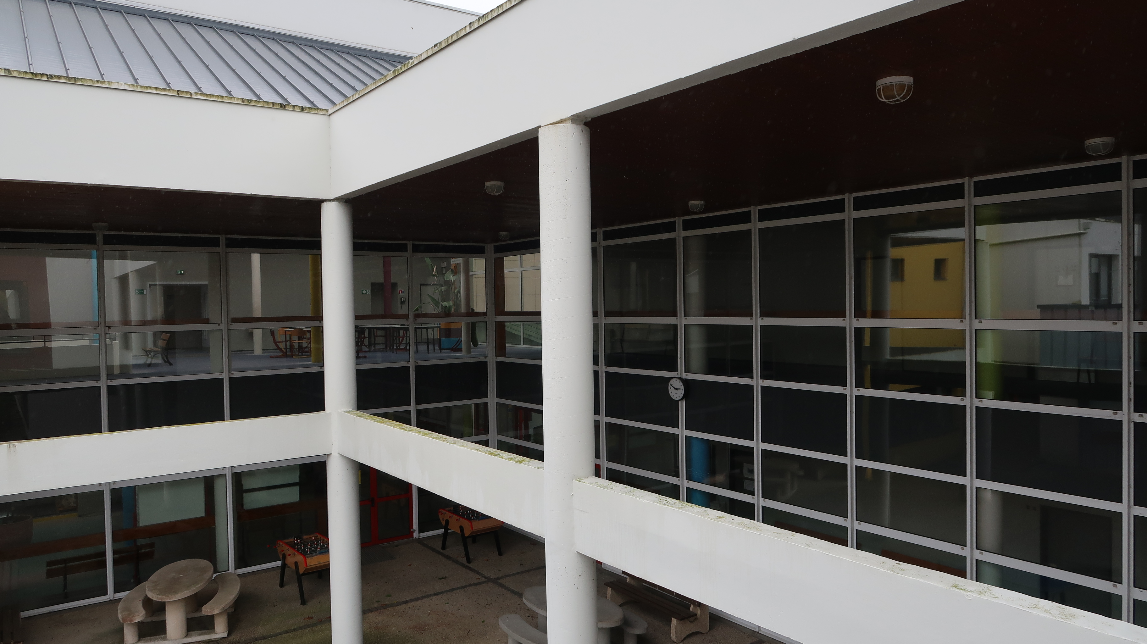 Détail sur le portique du préau.Immatriculation