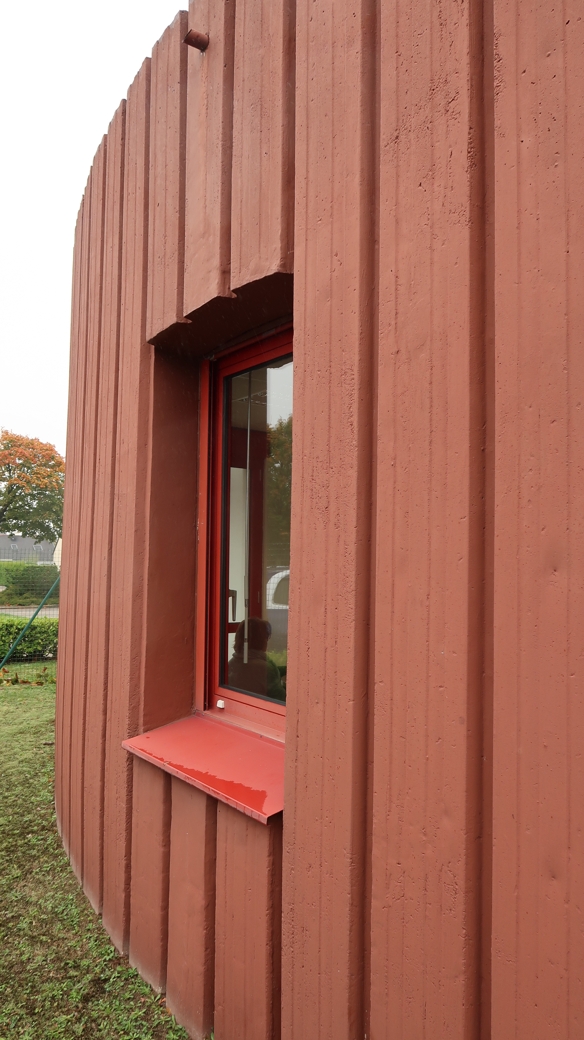 Détail sur le traitement de l'extrémité ouest du bâtiment E.Immatriculation