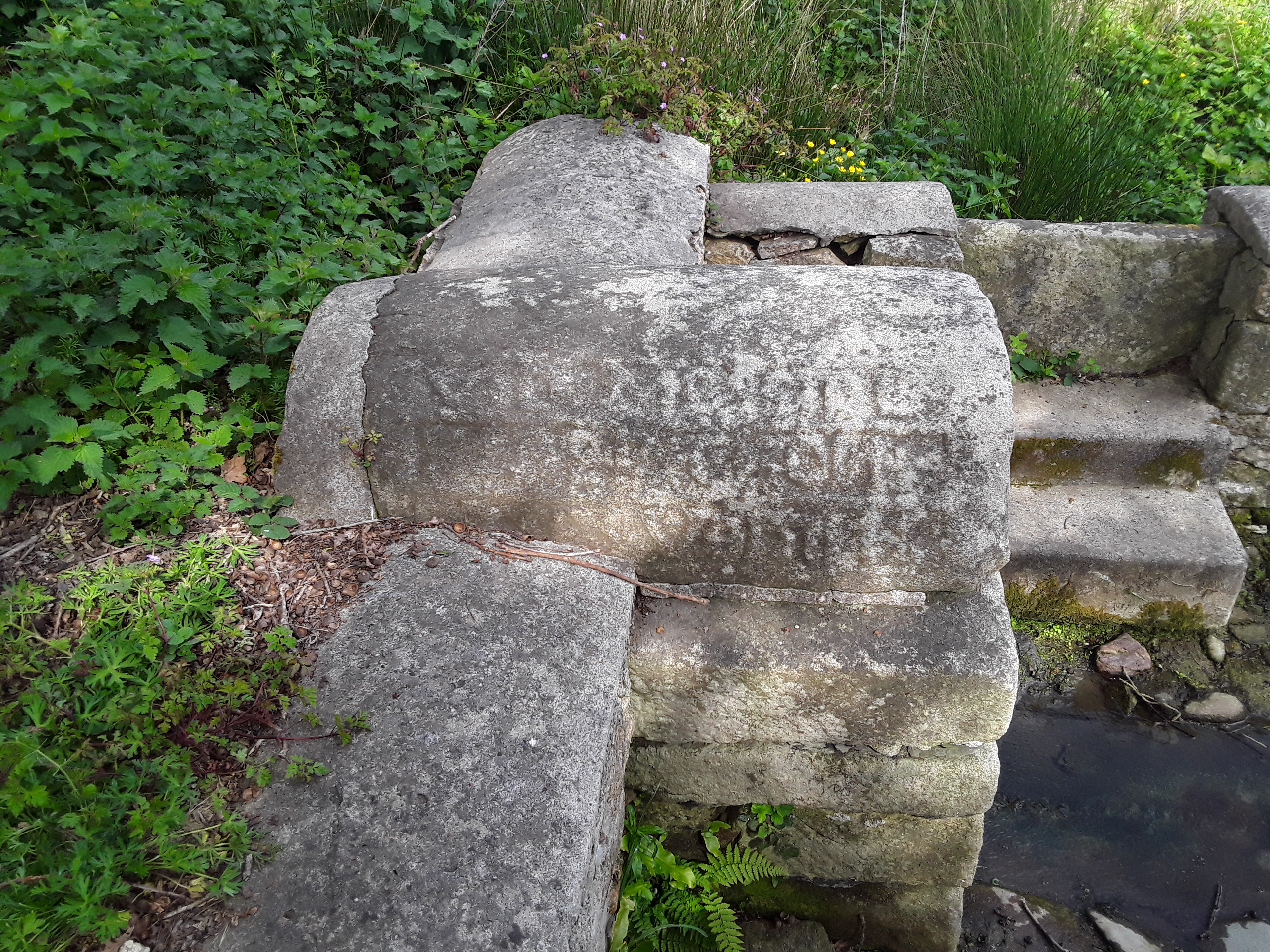 Fontaine, côté ouest de la voute, Inscription : V :D : MESSIRE PERICHON ET SES VOISINS (?). (2018)Immatriculation