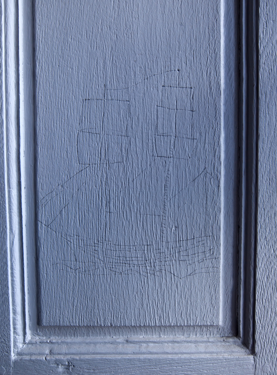 Bureau de l'étage, détail d'un graffiti de goélettteImmatriculation