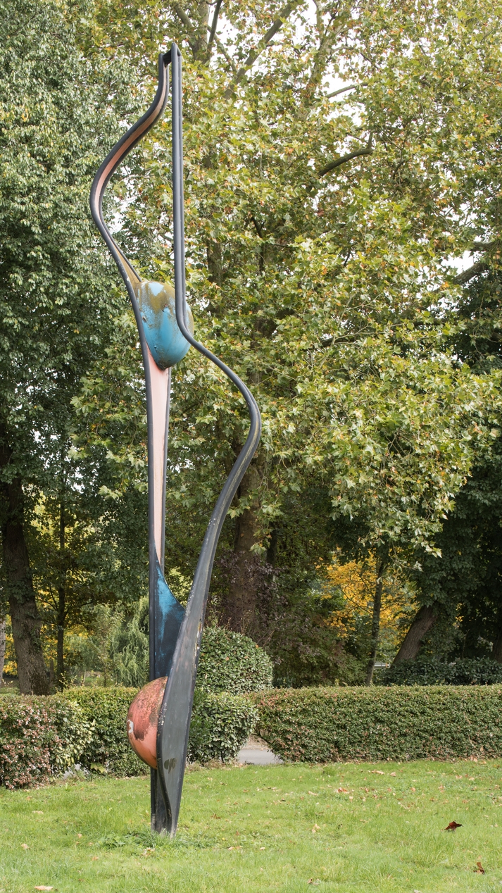 Francis Pellerin : "Signal", sculpture en acier peint de 650 x 160 x 120 cm.Immatriculation