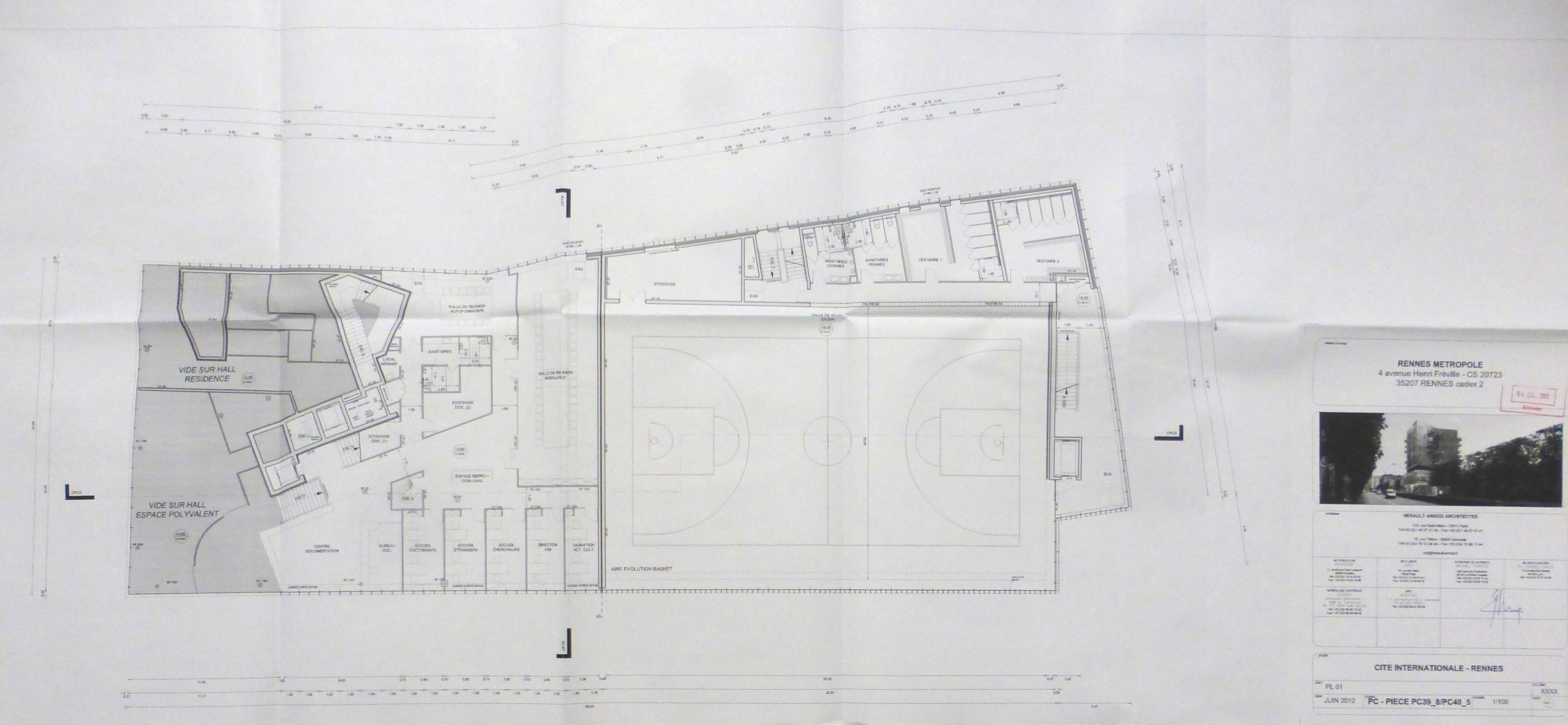 AC Rennes : non coté. Plan du premier étage. Hérault Arnod Architectes, 2012.