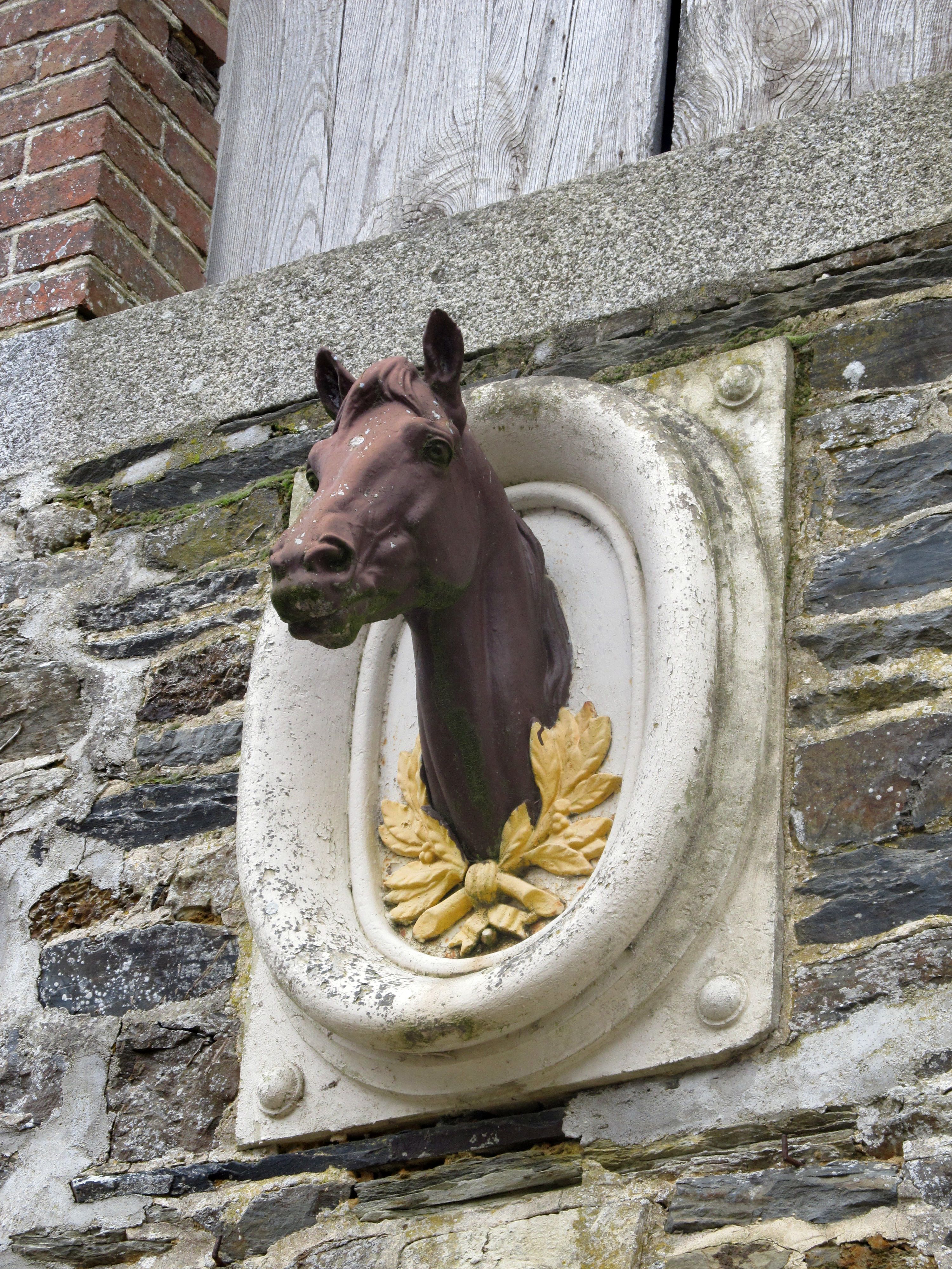 Anciennes écuries du manoir. Détail d'une tête de cheval en fonte de ferImmatriculation