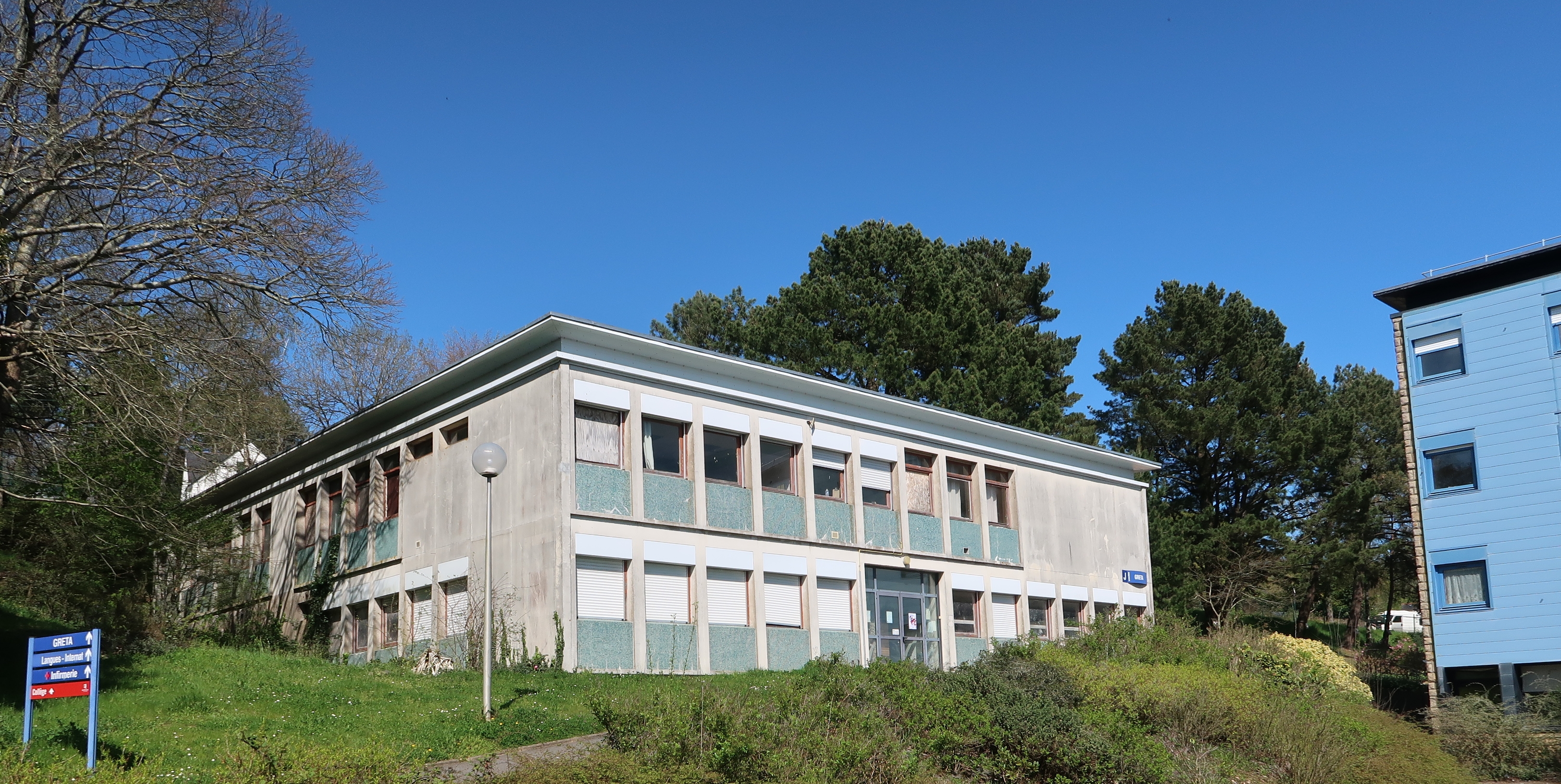 L'ancienne infirmerie, aujourd'hui occupée par le Greta (bâtiment J). A droite, vue partielle du pignon de l'internat (G).Immatriculation