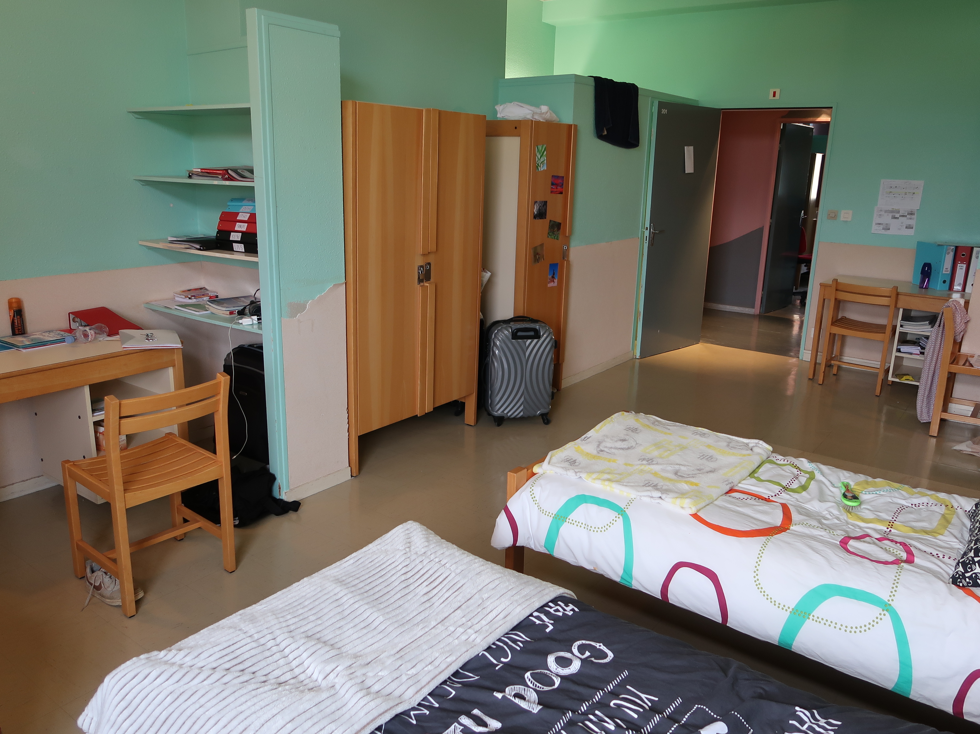 Internat (bâtiment I) : aménagement intérieur d'une chambre.Immatriculation