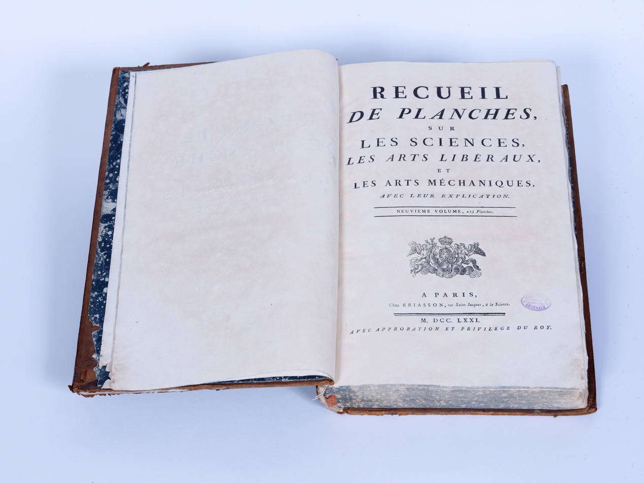L'encyclopédie de Diderot et d'Alembert, exemplaire original. Recueil de planches, 1771. Le lycée possède, en son "trésor" (bibliothèque ancienne), un exemplaire complet de l'Encyclopédie.Immatriculation